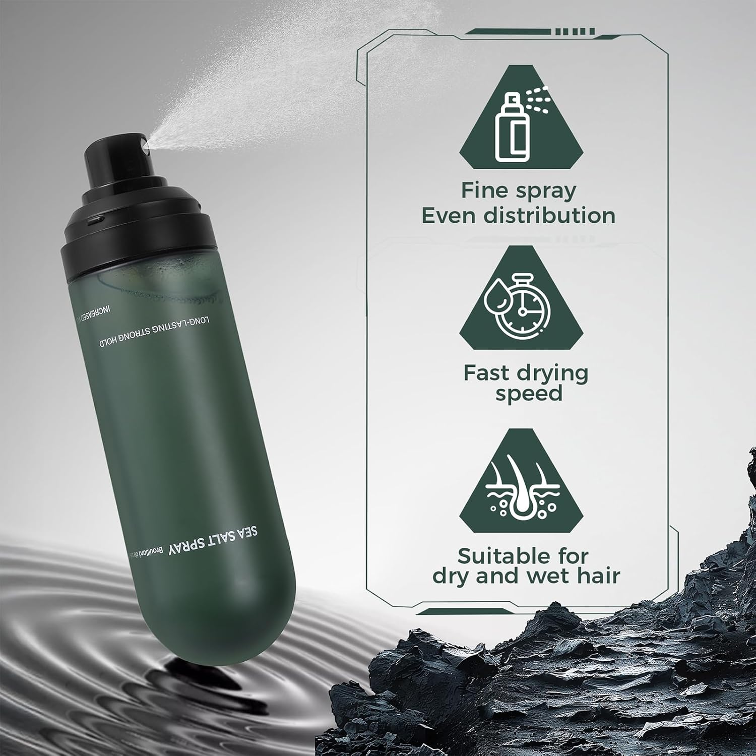 Sea Salt Spray for Men - Texturizing Spray for Beach Waves, Volume & Strong Hold - Non-Sticky, No White Residue with Sargassum Extract (100ml)