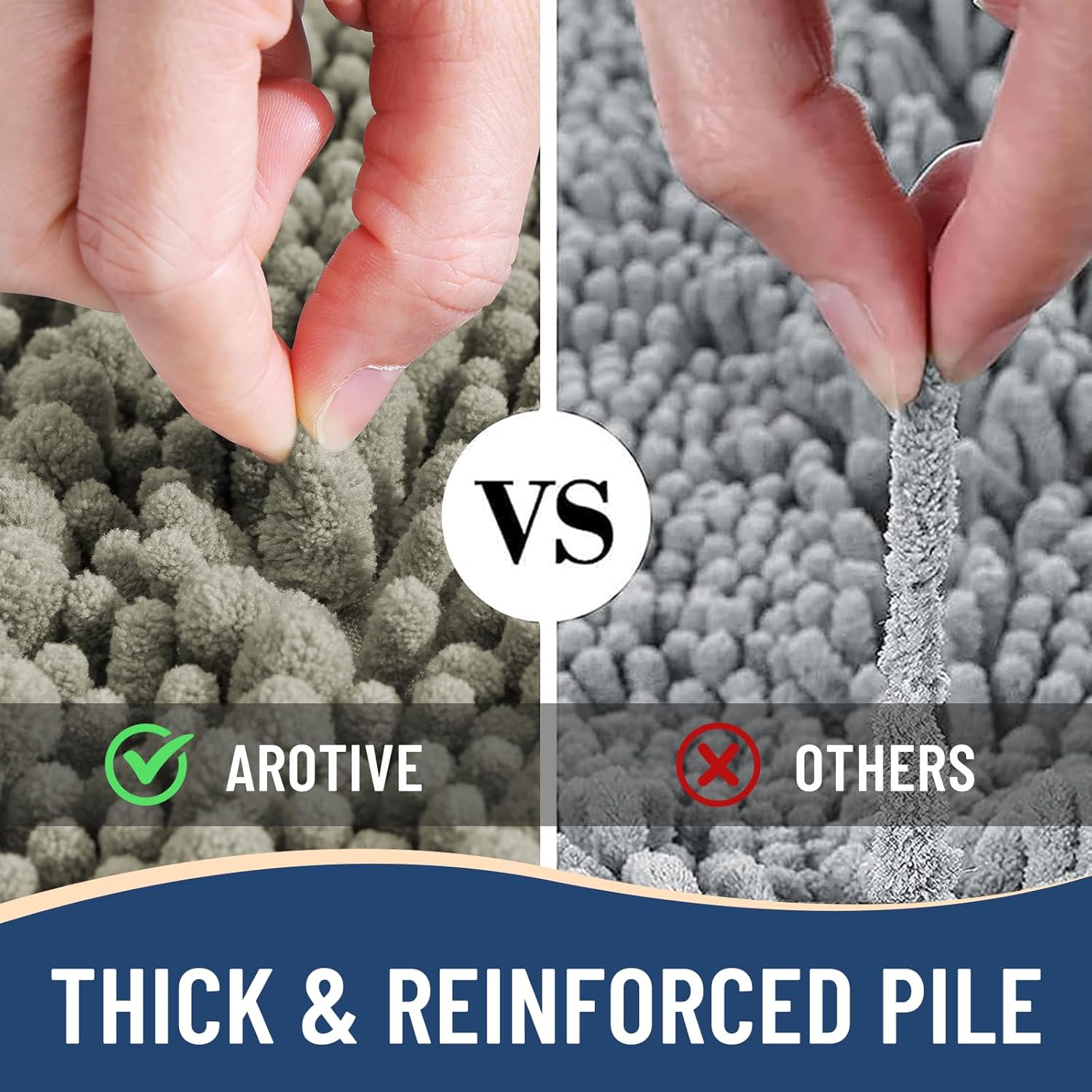 - Anti-Skid Backing: Arotive chenille bathroom rugs feature a non-slip bottom consisting of sturdy mesh PVC material that stops the bath mat from shifting and skidding. The middle layer is 4 mm memory foam, which can let you feel more comfortable when wrapping into the rugs. WARNING: Place bath mat on CLEAN DRY FLAT FLOOR ONLY. Water under bath rug can cause it to slip. Always keep the bottom of bath rug dry