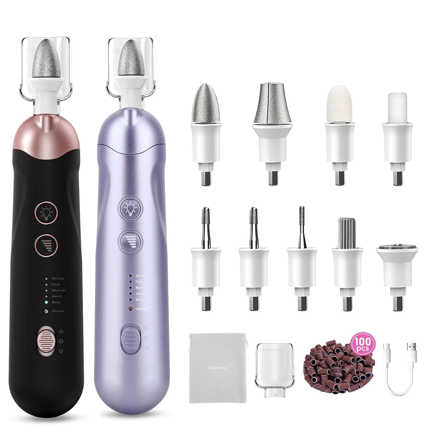 2 Pack 9-in-1 Electric Nail Grinder with 100 Bits: Cordless, 5 Speeds, Professional Manicure & Pedicure Kit