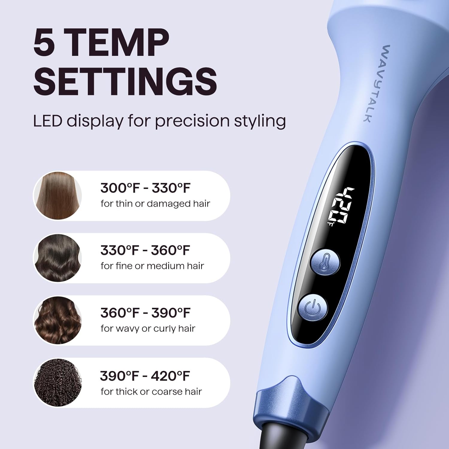 - 5 Temperature Settings & LED Digital Display: Wavytalk thermal round brush offers multiple temperature options, allowing better control during styling to achieve optimal results while minimizing heat damage. 300β/330β for thin or damaged hair; 360β for normal hair; 390β/420β for thick or coarse hair.