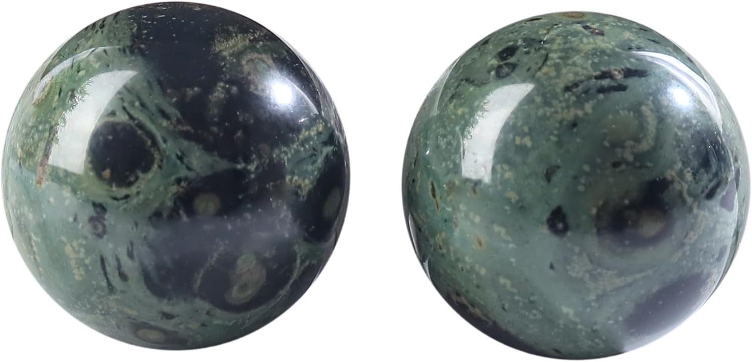 - Set of two 30mm spheres crafted from natural materials – Hand-polished with minor size variations (1-2mm). Stones feature natural grain/color differences and inherent imperfections.