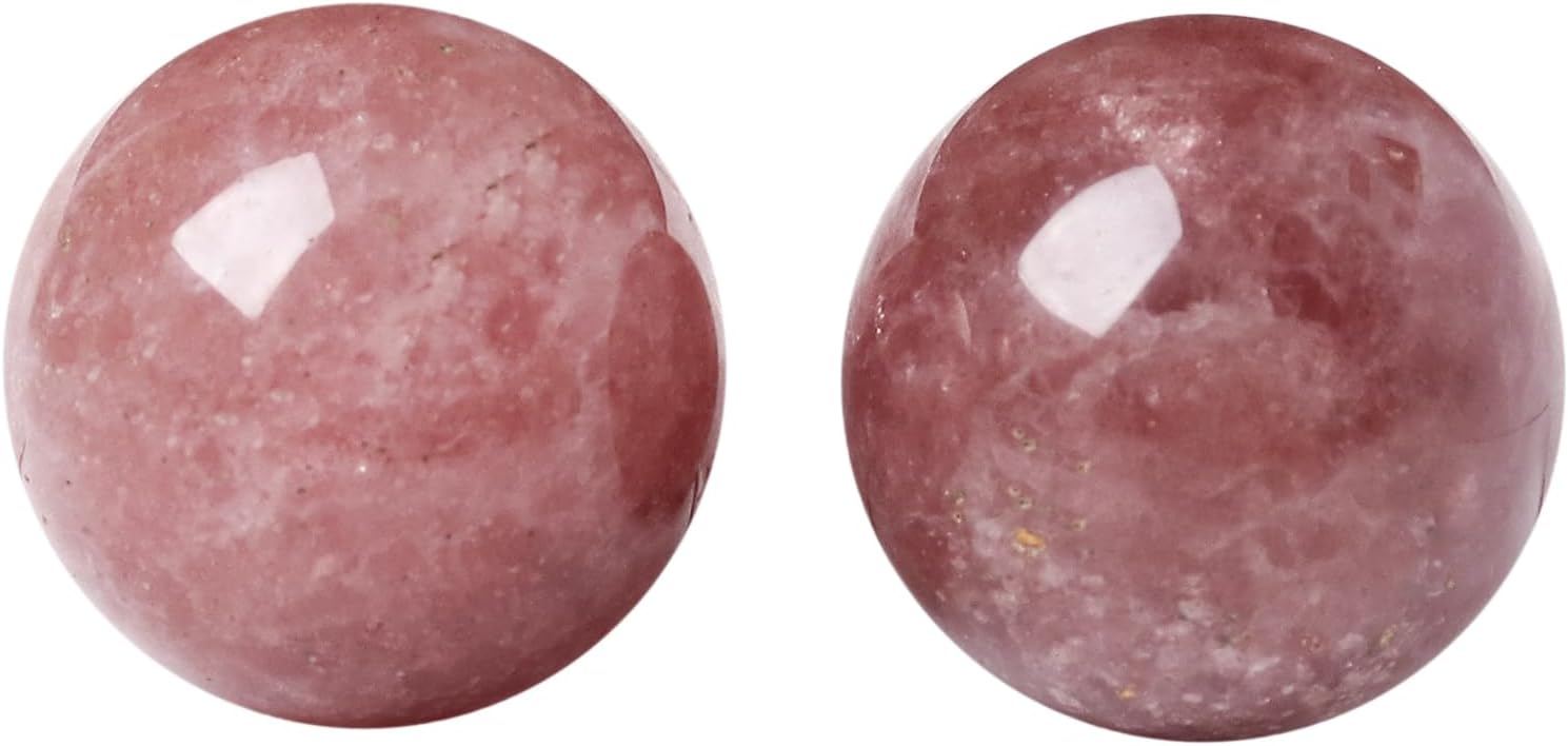 Hand Exercise Balls 30mm for Women - Set of 2 Natural Crystal Stone Spheres - Finger Joint Relief & Stress Relax, Perfect Size for Women's Hands, Strawberry Quartz