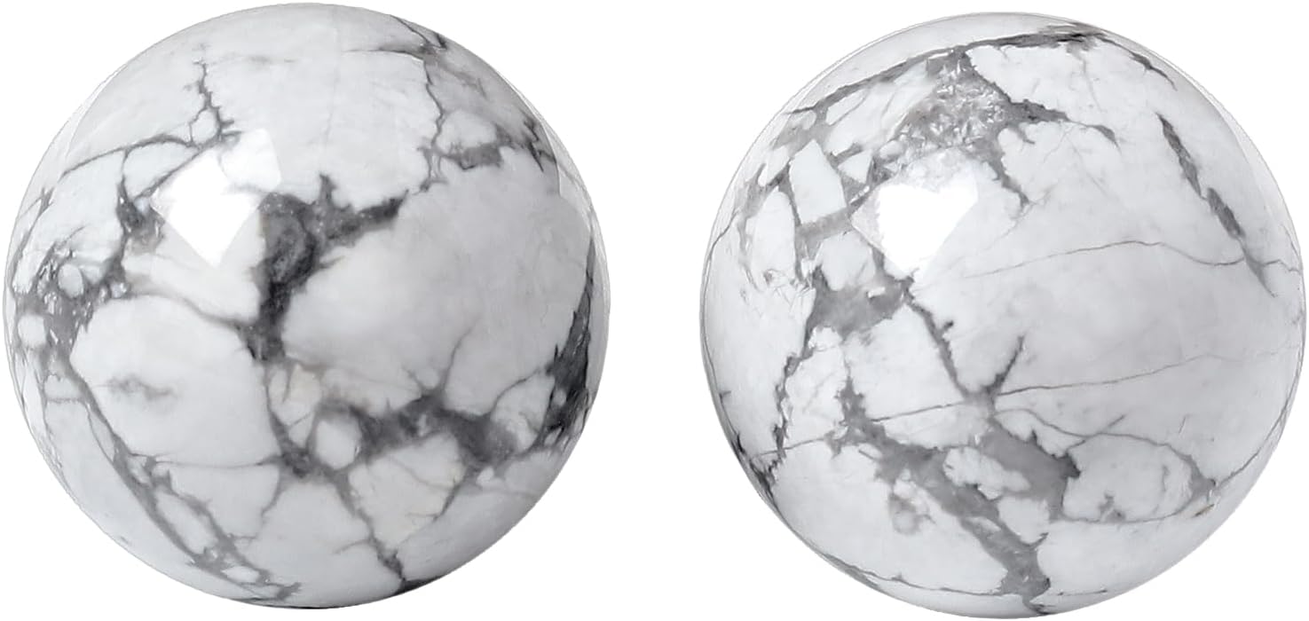 Hand Exercise Balls 30mm for Women - Set of 2 Natural Crystal Stone Spheres - Finger Joint Relief & Stress Relax, Perfect Size for Women's Hands, White Howlite Turquoise