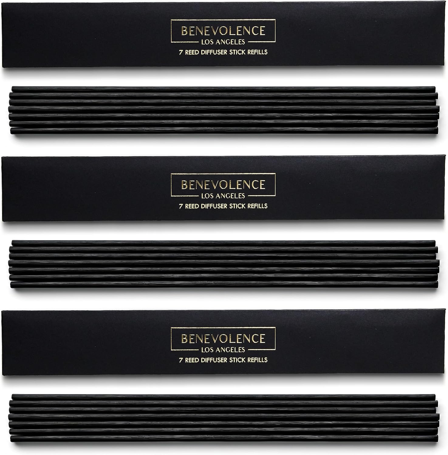 Benevolence LA Reed Diffuser Sticks - 3 Pack of 7 Natural Rattan Sticks per Pouch – Home Fragrance Refill, Eco-Friendly Reed Replacement for Essential Oil Diffusers