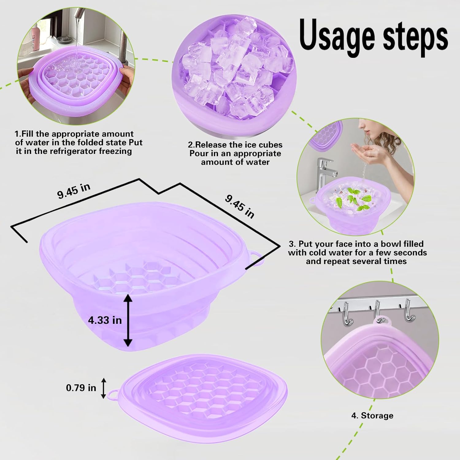 Face Bowl for Ice with Built-in IceTray,Collapsible Silicone Face Ice Bowl – Cold Plunge Therapy for Skin Tightening & Facial Treatment– Portable Spa Tool for Home & Travel(Purple)