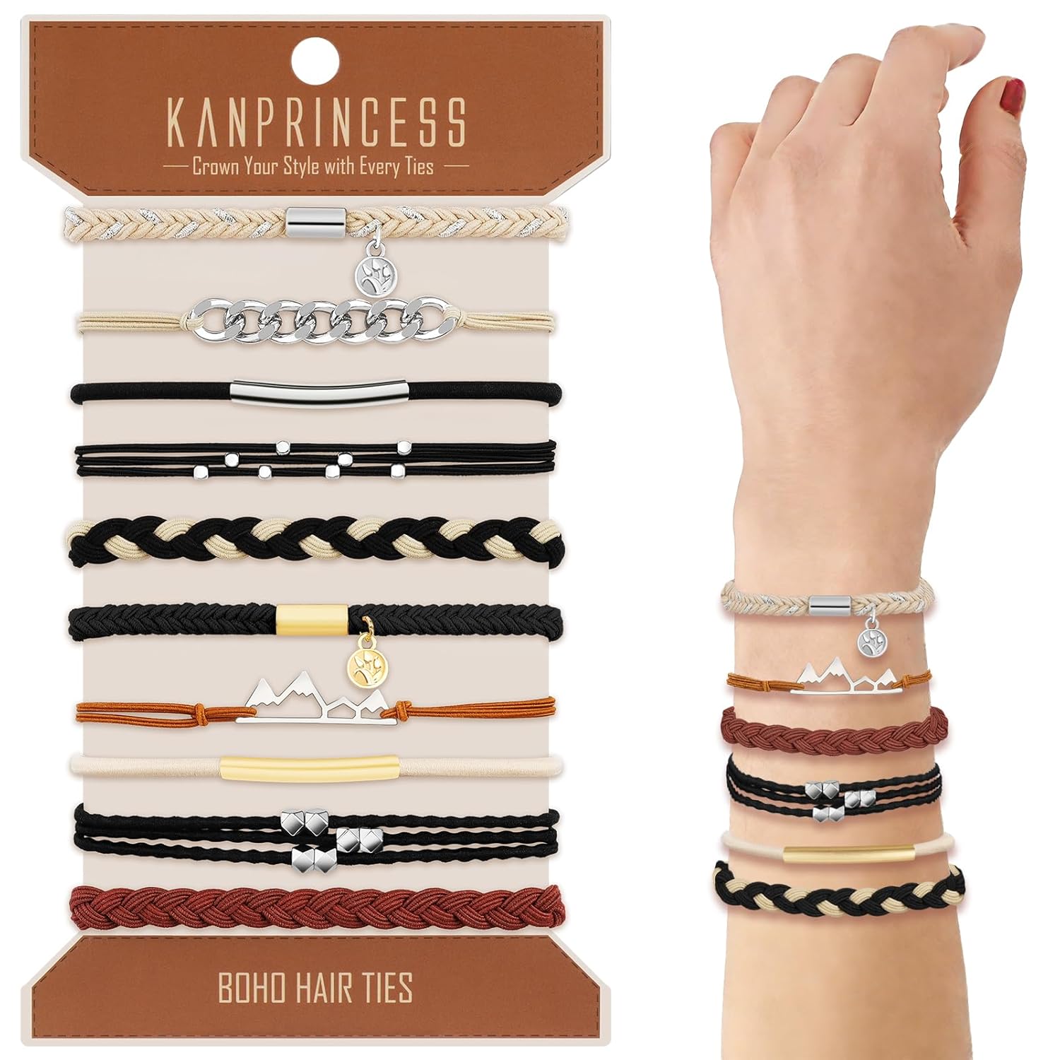 - ①【10Pcs Set】: This set have 10 different styles, 1pcs of each style, total 10pcs different boho hair ties, which can satisfy your daily use.