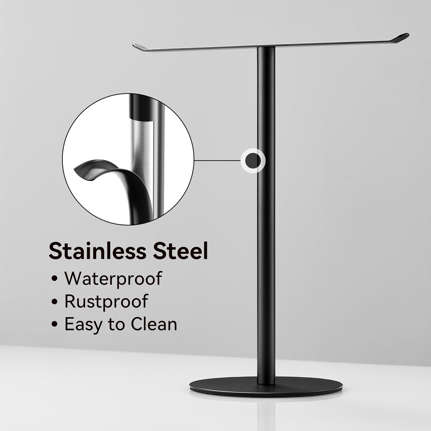 Black Hand Towel Holder Stand – Countertop T-Shaped Stainless Steel Towel Rack with Non-Slip Base for Vanity and Kitchen