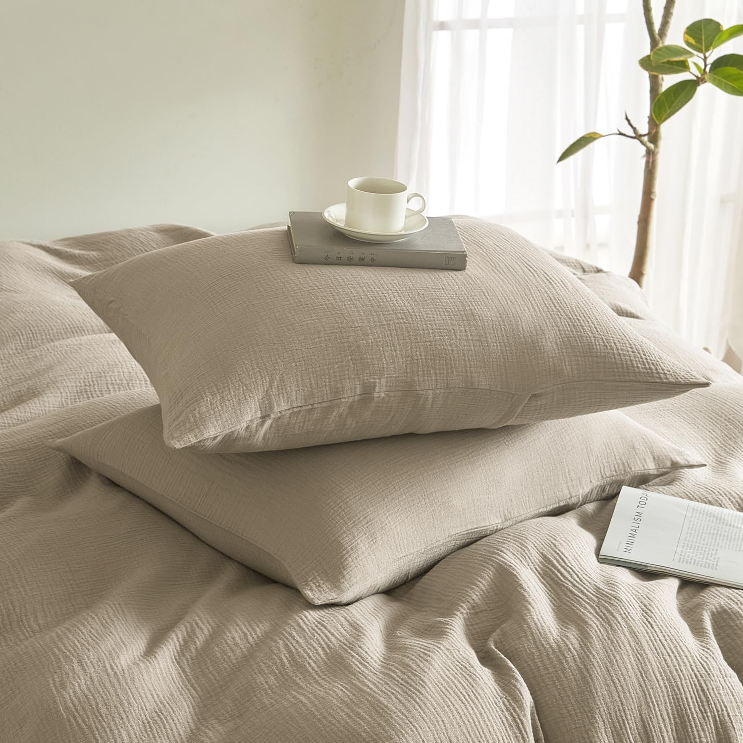 SE SOFTEXLY Muslin Pillowcases Standard Size 100% Cotton, 2 Pack Linen Like Pillow Shams with Envelope Closure, Ultral Soft and Breathable Pillow Case Covers, Beige, 20" X 26", No Filling