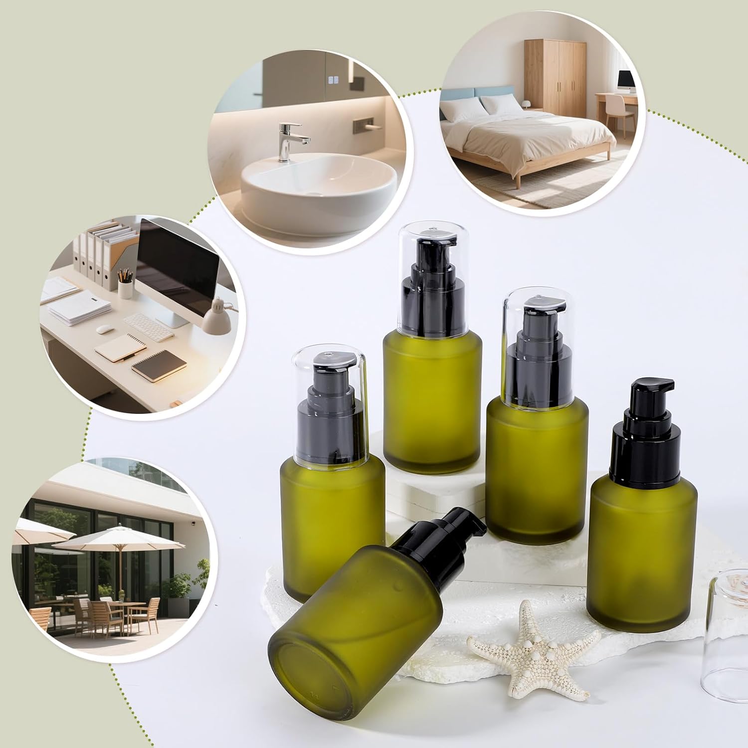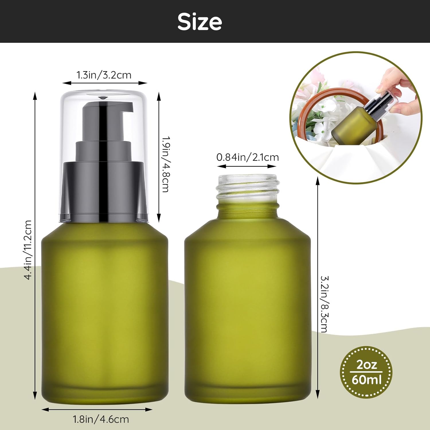 Segbeauty 2oz Frosted Glass Travel Lotion Container Refillable, 5pcs Small Travel Containers for Creams, 60ml Mini Empty Lotion Bottles with Pump Dispenser, Cosmetic Containers Bottle for Oils Creams
