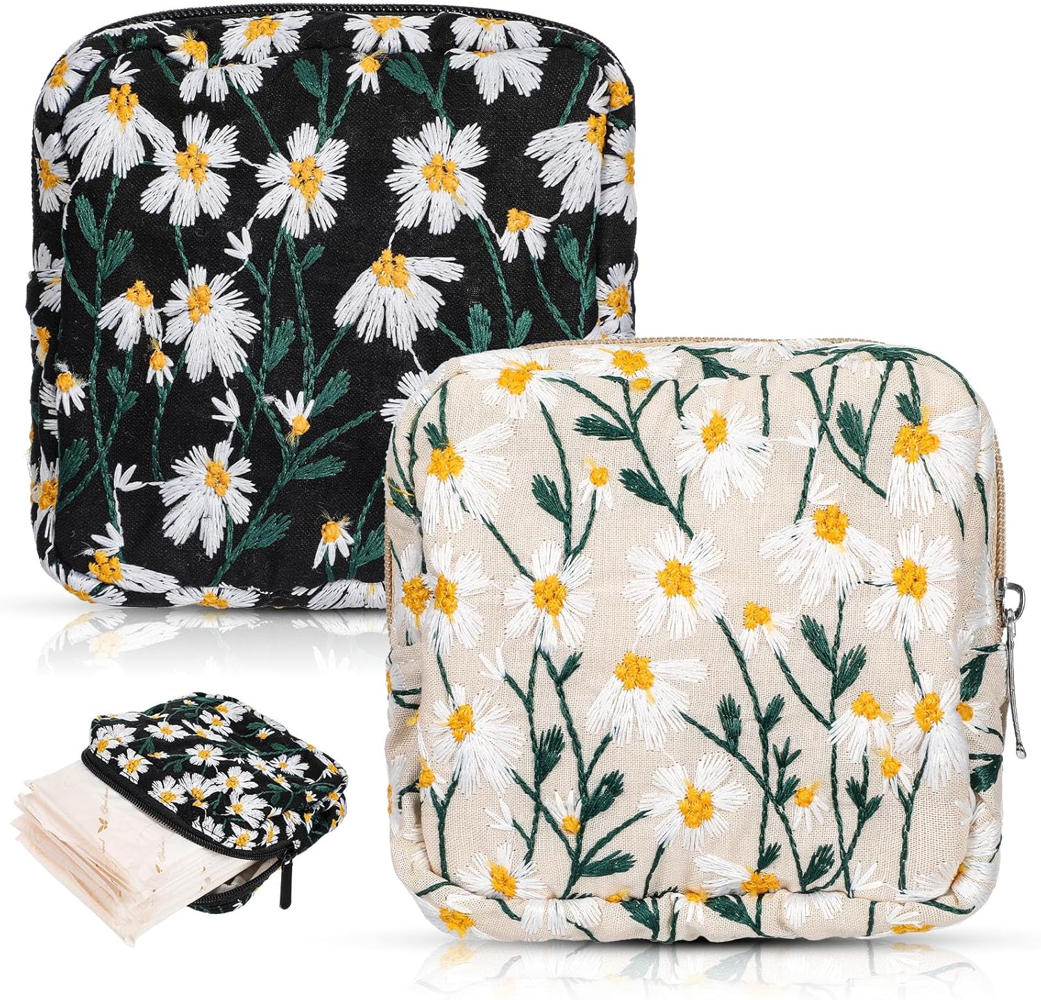 - Elegant Design Period Bag: Featuring daisy embroidery, this period pouch adds a touch of elegance to your essentials. The distinctive design ensures your sanitary napkin storage bag is both practical and visually appealing, suitable for women and teen girls