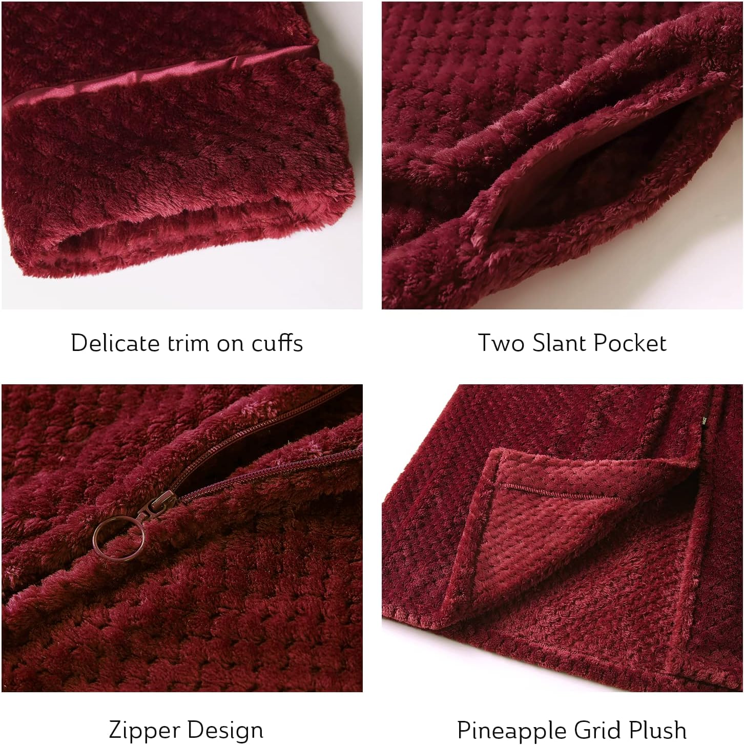 Artfasion Womens Fleece Robe Plush Long Zip Front Bathrobe with Pockets Warm Soft Zippered Bathrobes for Women
