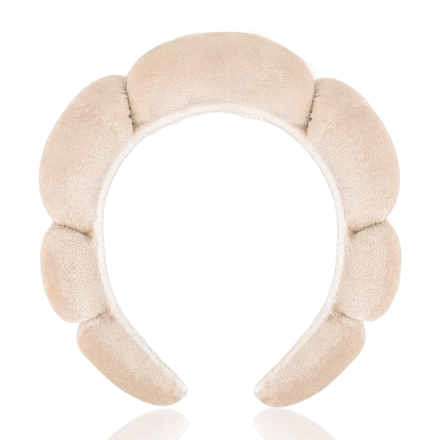 CAVETEE Spa Headband for Washing Face, Sink Care Headband for Women Sponge Bubble Makeup Head band for Women, Soft Velour Hair Accessoriesfor Girls (Beige, one size)