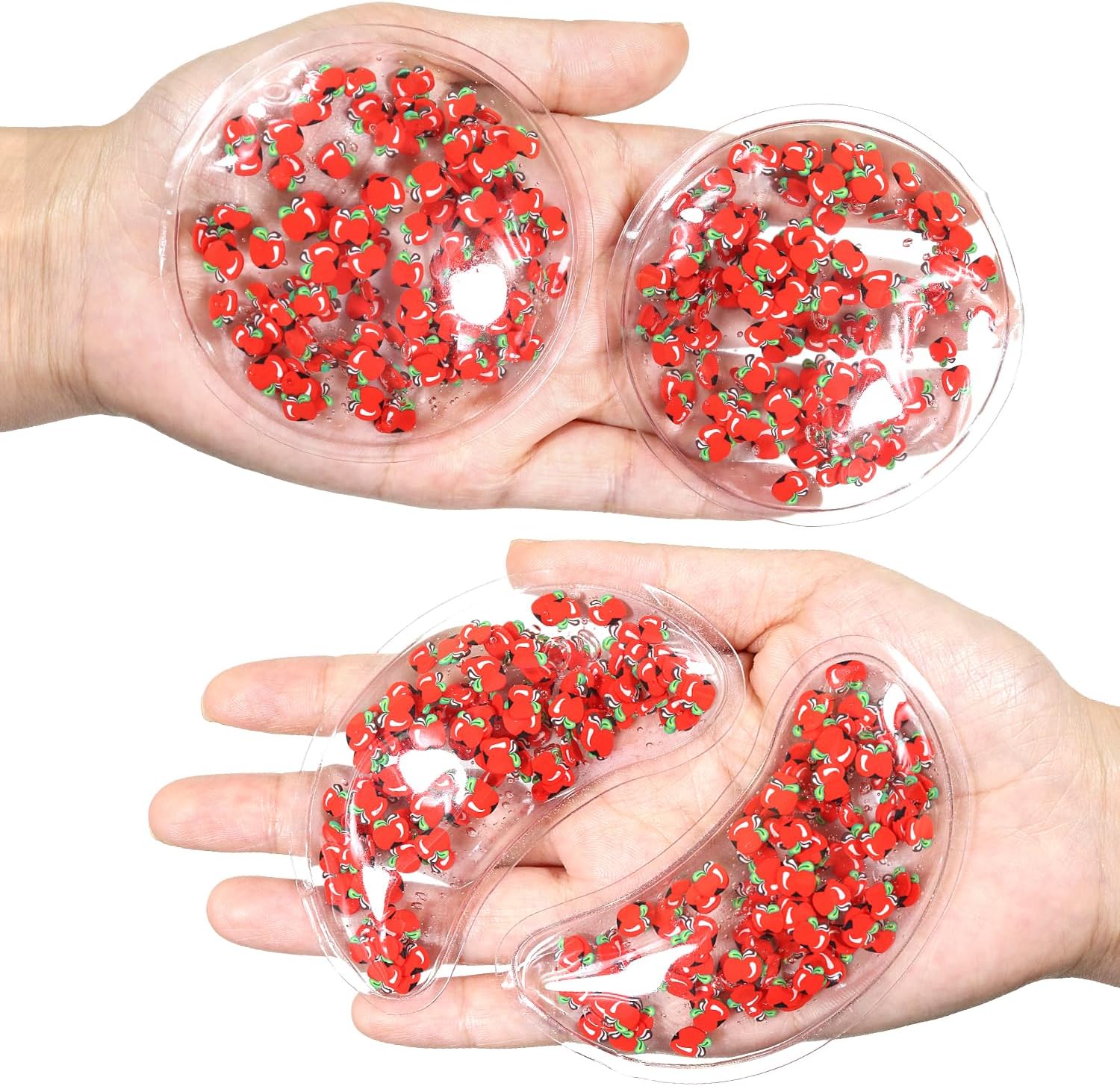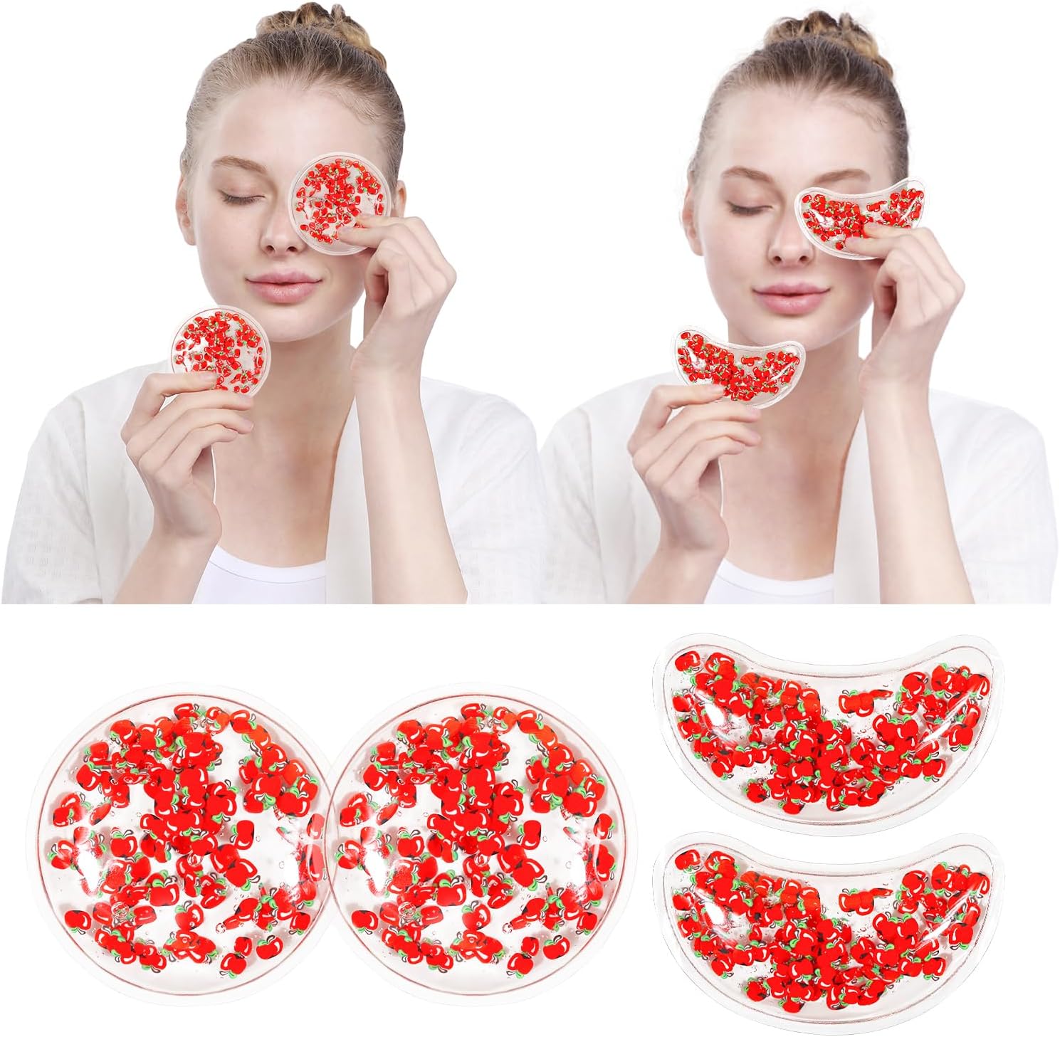 4PCS Gel Eye Ice Pack Set, Cold & Hot Compress, Reusable Cooling Gel Pads for Strain Relief, Relaxation, SPA and Sleep (4 Apples)