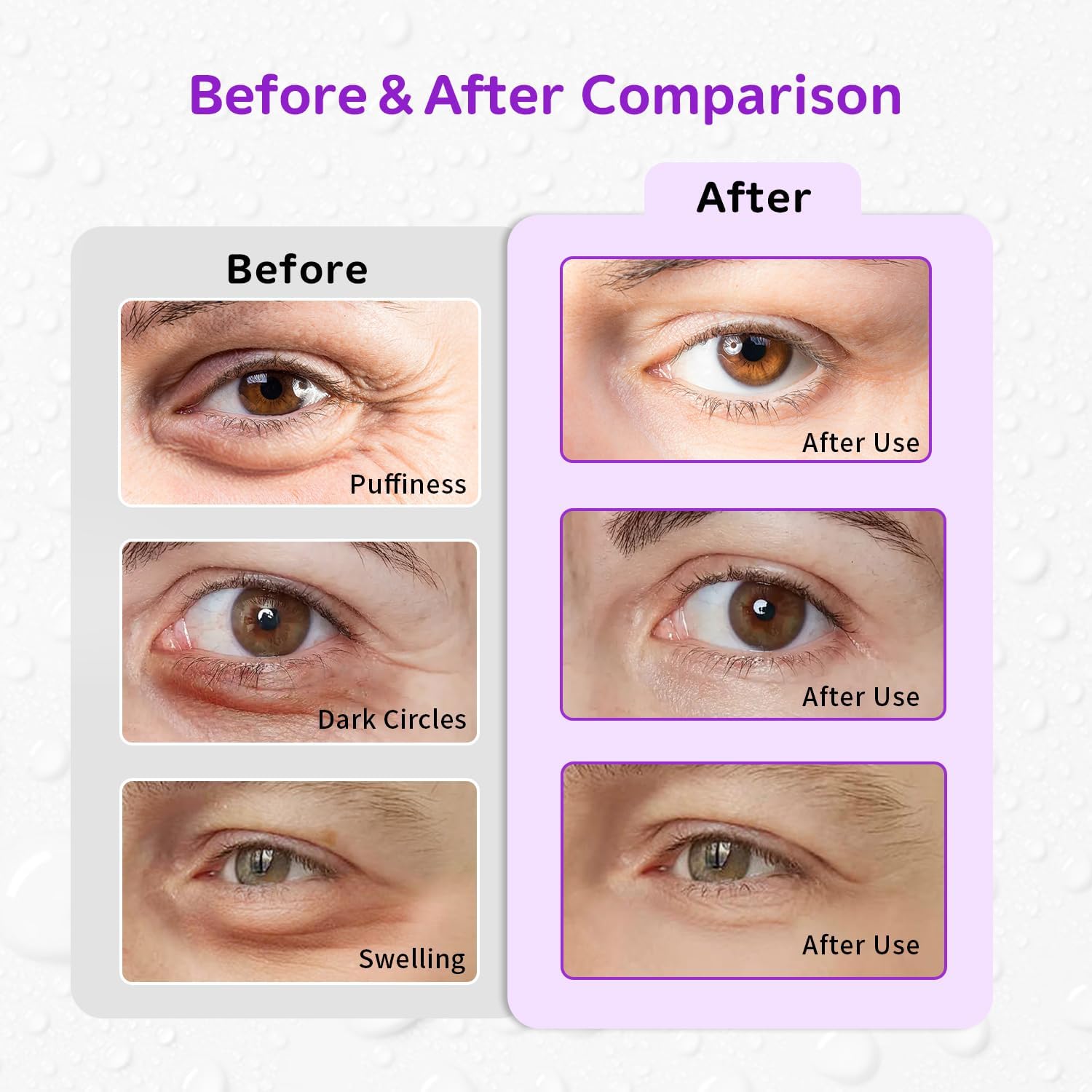 - [Soothe tired eyes]The Conbella cold compress for eyes and reusable under eye gel pads set provides soothing relief for screen-weary eyes. These cooling eye pads are designed to address eye strain,relexation and improve sleeping. The combination of both types of patches ensures comprehensive care for the delicate skin around the eyes. The reusable eye gel pads and under eye patches reusable set are suitable for post-work unwind, pre-sleep calm and morning revival.Use with skincare or alone for instant refreshment.