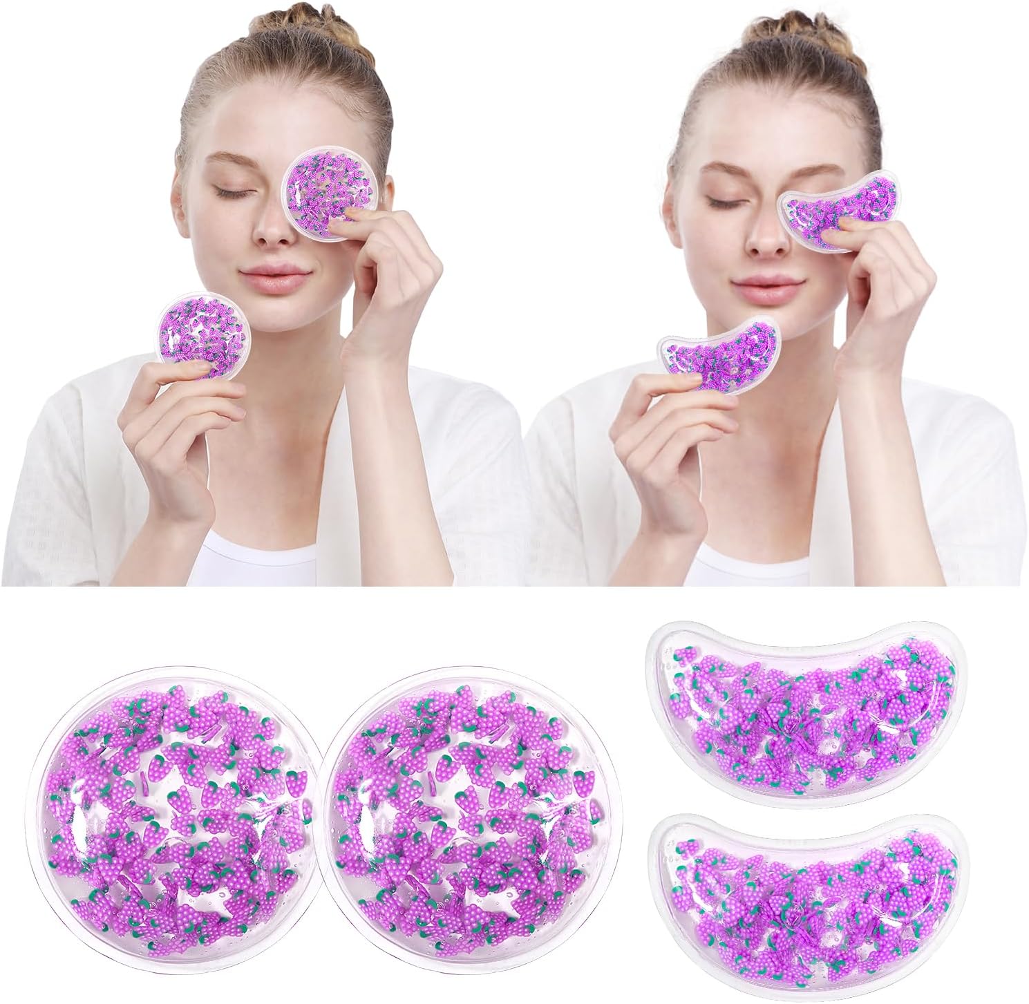 4PCS Gel Eye Ice Pack Set, Cold & Hot Compress, Reusable Cooling Gel Pads for Strain Relief, Relaxation, SPA and Sleep (4 Grapes)