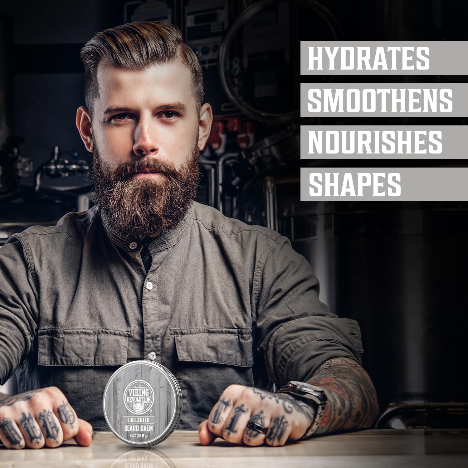 Viking Revolution Unscented Beard Balm for Men - Beard Butter with Argan Oil and Jojoba Oil Softener and Moisturizer Styling Balm - Gifts for Men with Beeswax and Shea Butter (1 Pack, 2oz)
