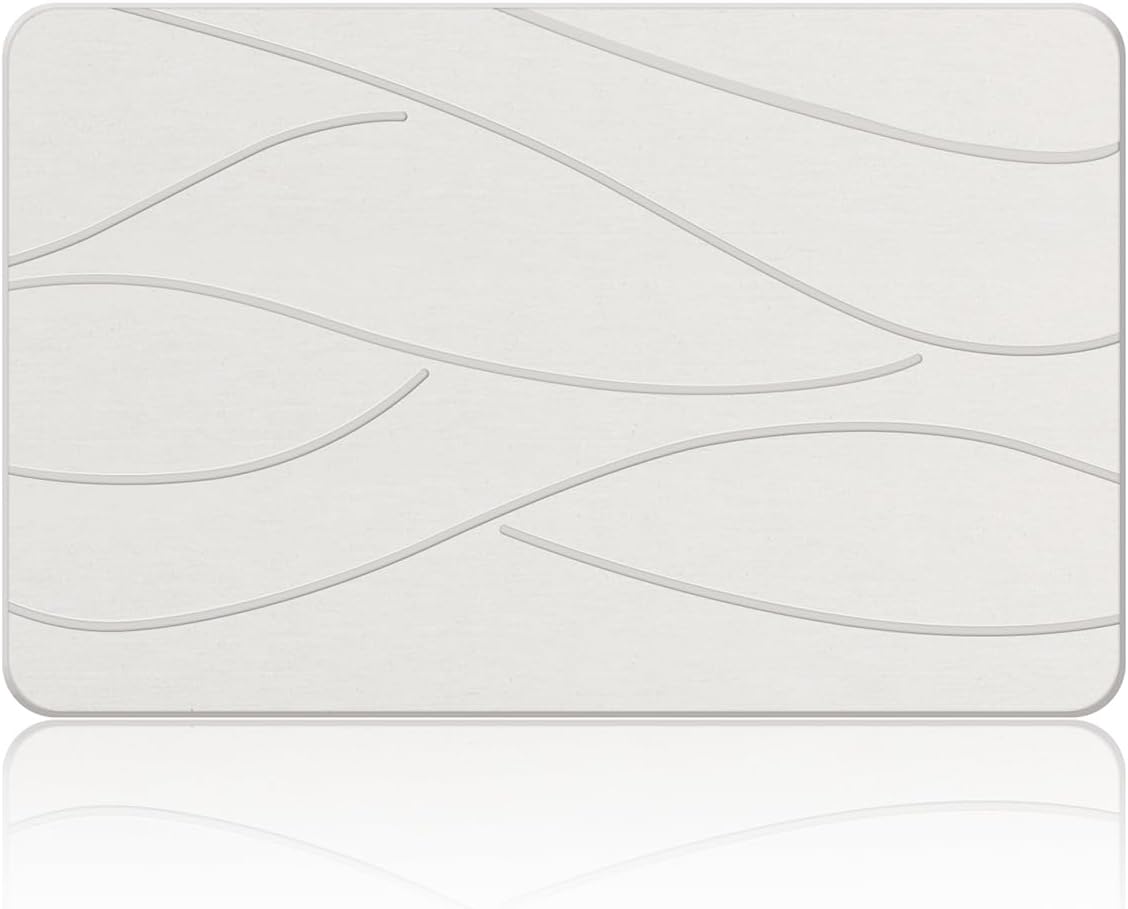 Stone Bath Mat Diatomaceous Earth Shower Mat Non-Slip Super Absorbent Diatomite Stone Bath Mats for Bathroom Floor Quick Drying Natural Easy to Clean(23.6''×15.4" White)