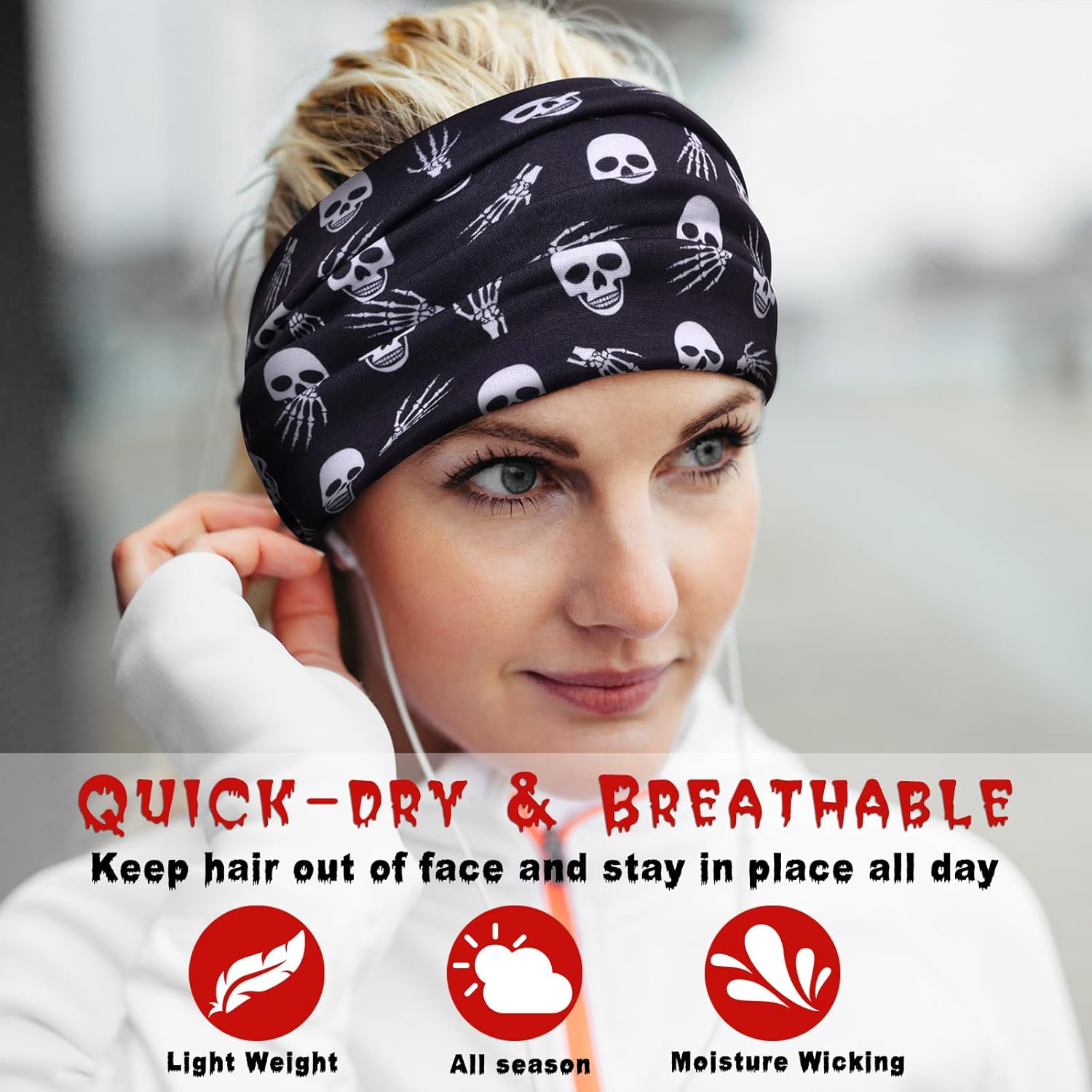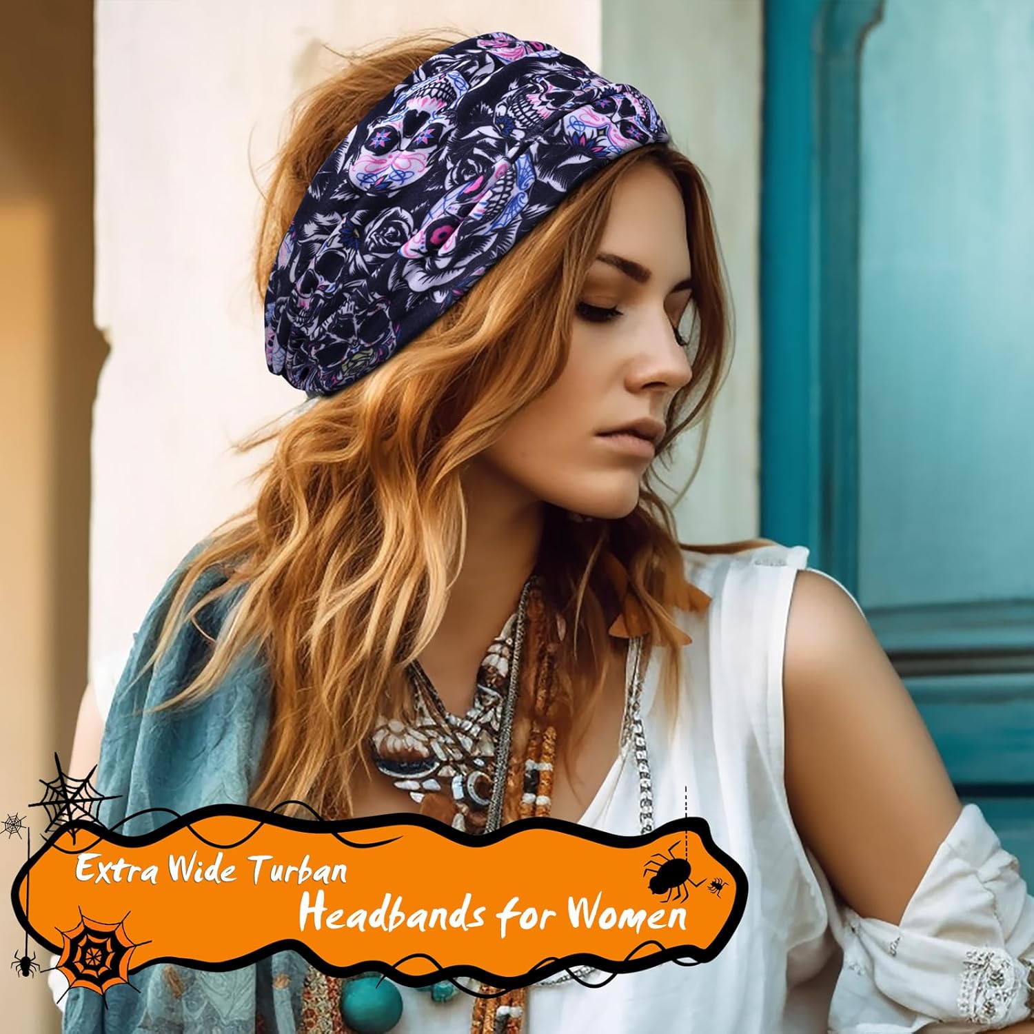 6 Pack Halloween Headbands for Women Hair Bands Skull Headbands Pumpkin Bat Wide Holiday Hair Bands, Holiday Gift Hair Accessories
