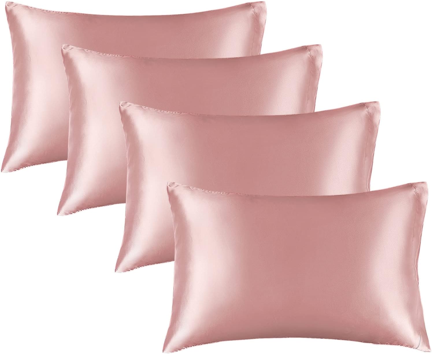 BEDELITE Satin Pillowcase for Hair and Skin, Super Soft Similar to Silk Pillow Cases 4 Pack with Envelope Closure, Cooling Pillowcases for Women Men (20"x36" King Size, Rose Pink)