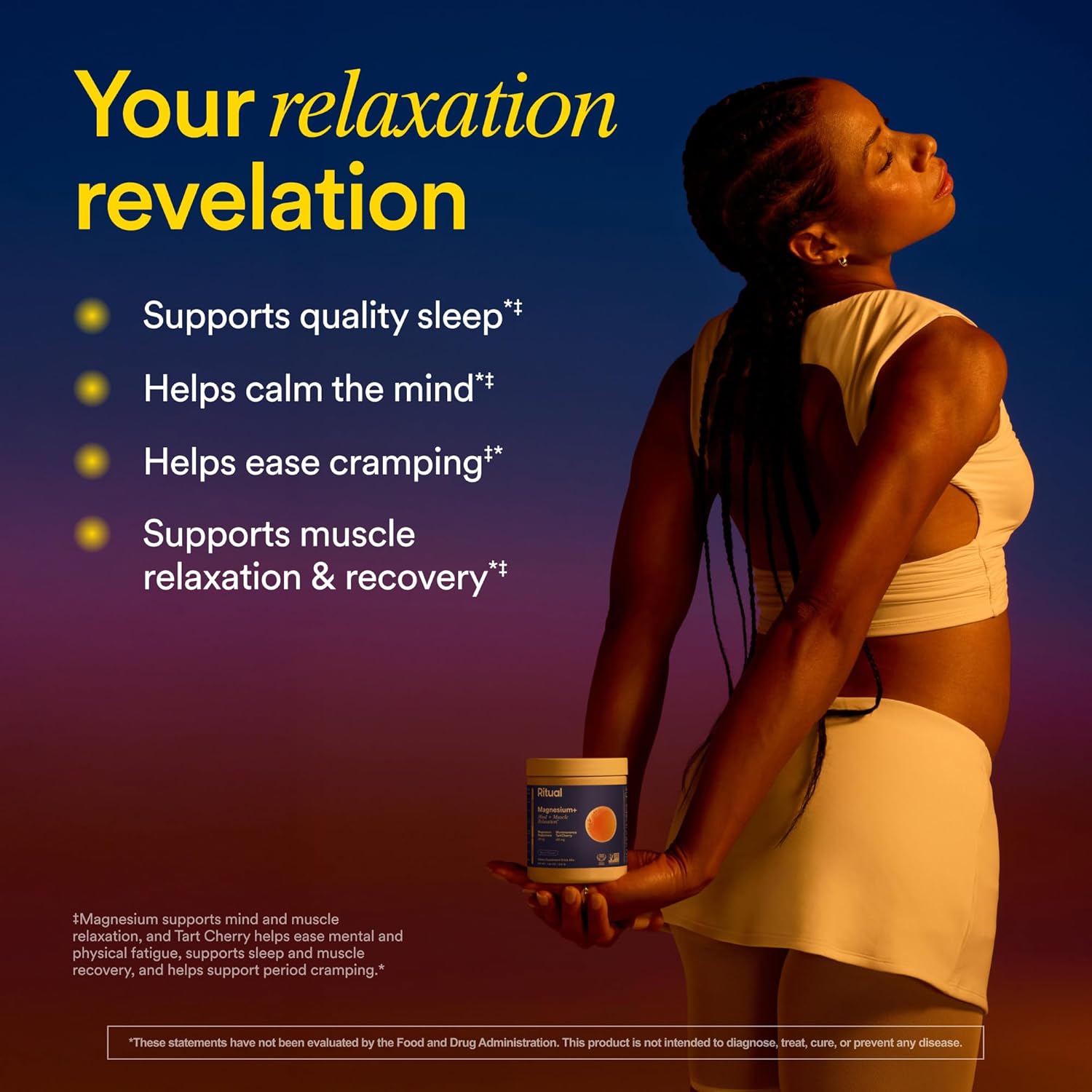 Ritual Magnesium+ Drink Mix Supplement | 2-in-1 Science-Backed Tart Cherry & Gentle on Stomach Magnesium Bisglycinate | Formulated for Mind & Muscle Relaxation | Supports Sleep & Calm | 30 Servings