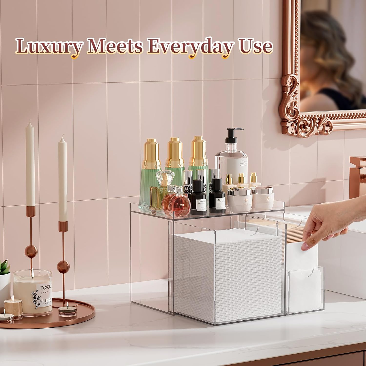 - Special Feature : 0.5-inch raised top border to secure items on top, High-transparency acrylic for a modern, clean look, Holds 50+ XL disposable facial towels (towels not included), Ideal for vanities and bathroom countertops, No installation required Smooth slide-out acrylic drawer for quick access 0.5-inch raised top border to secure items on top, High-transparency acrylic for a modern, clean look, Holds 50+ XL disposable facial towels (towels not included), Ideal for vanities a… See more