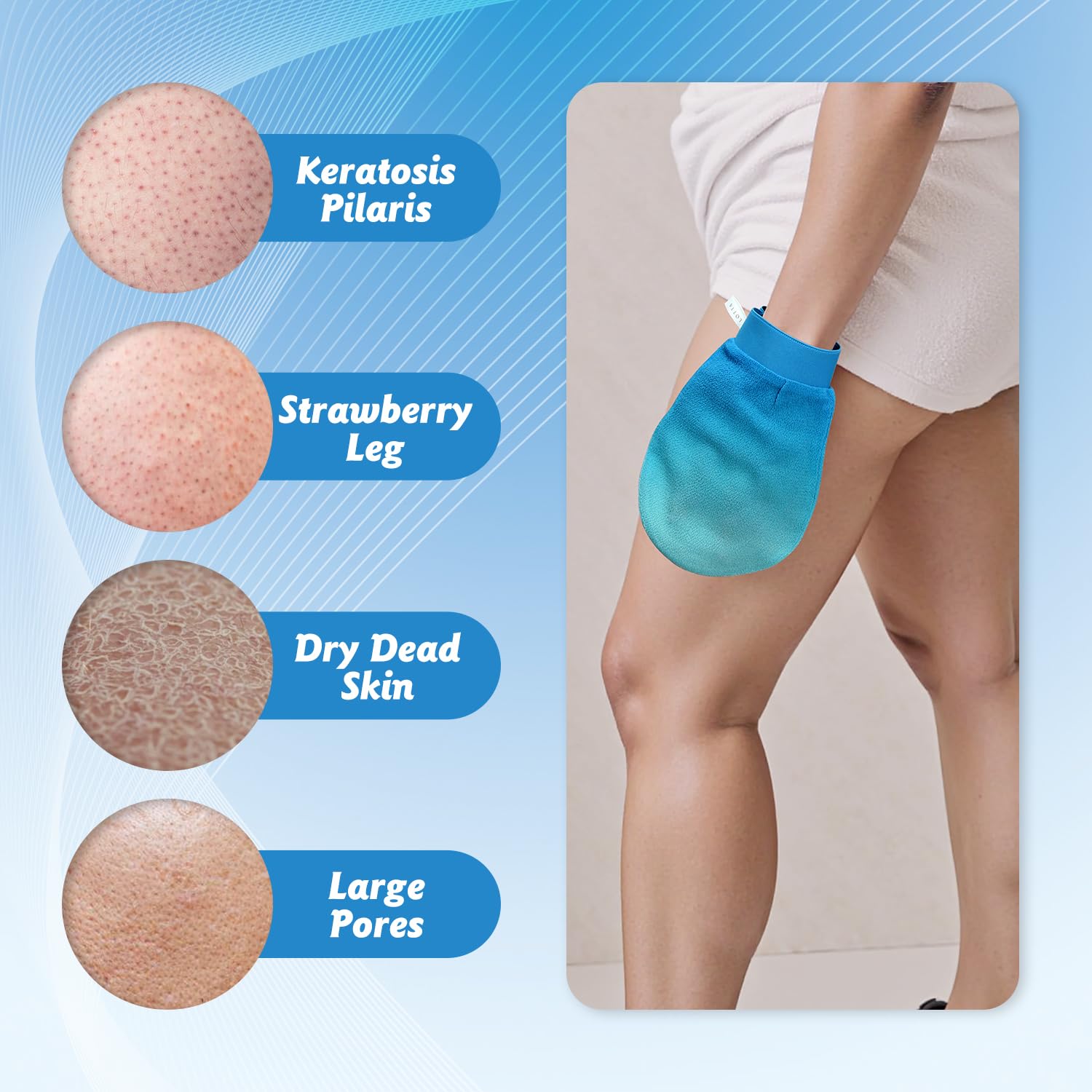 - Multi-Functional Skin Tool - Beyond basic exfoliation, these gloves help reduce ingrown hairs, prep skin for flawless self-tanning application, and enhance absorption of your favorite serums and lotions.