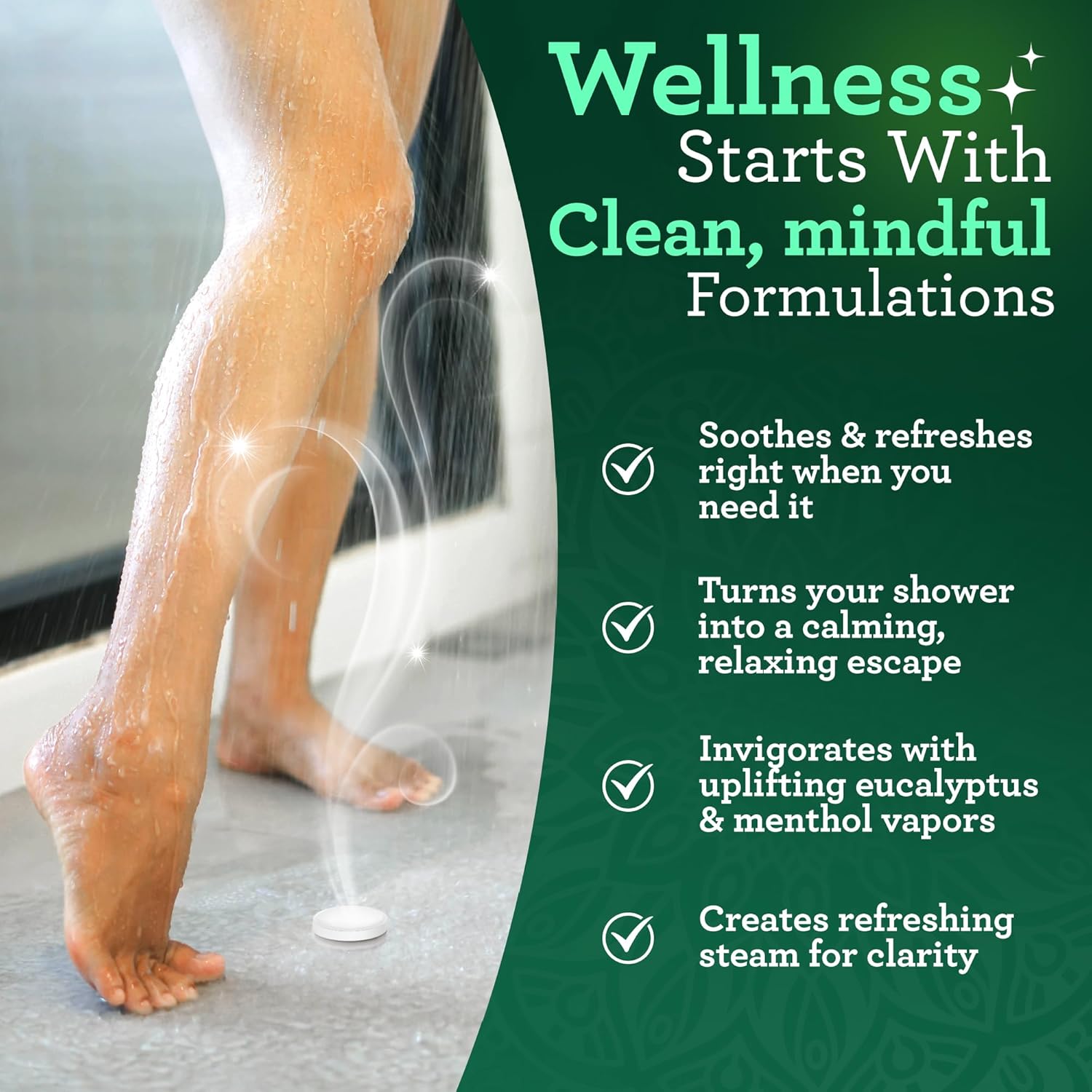 - INDULGE IN WELLNESS: Our shower steamers are infused with 100% pure menthol, eucalyptus, camphor, and cedarwood essential oils, delivering an invigorating aroma that soothes your senses and provides ultimate relaxation through aromatherapy.