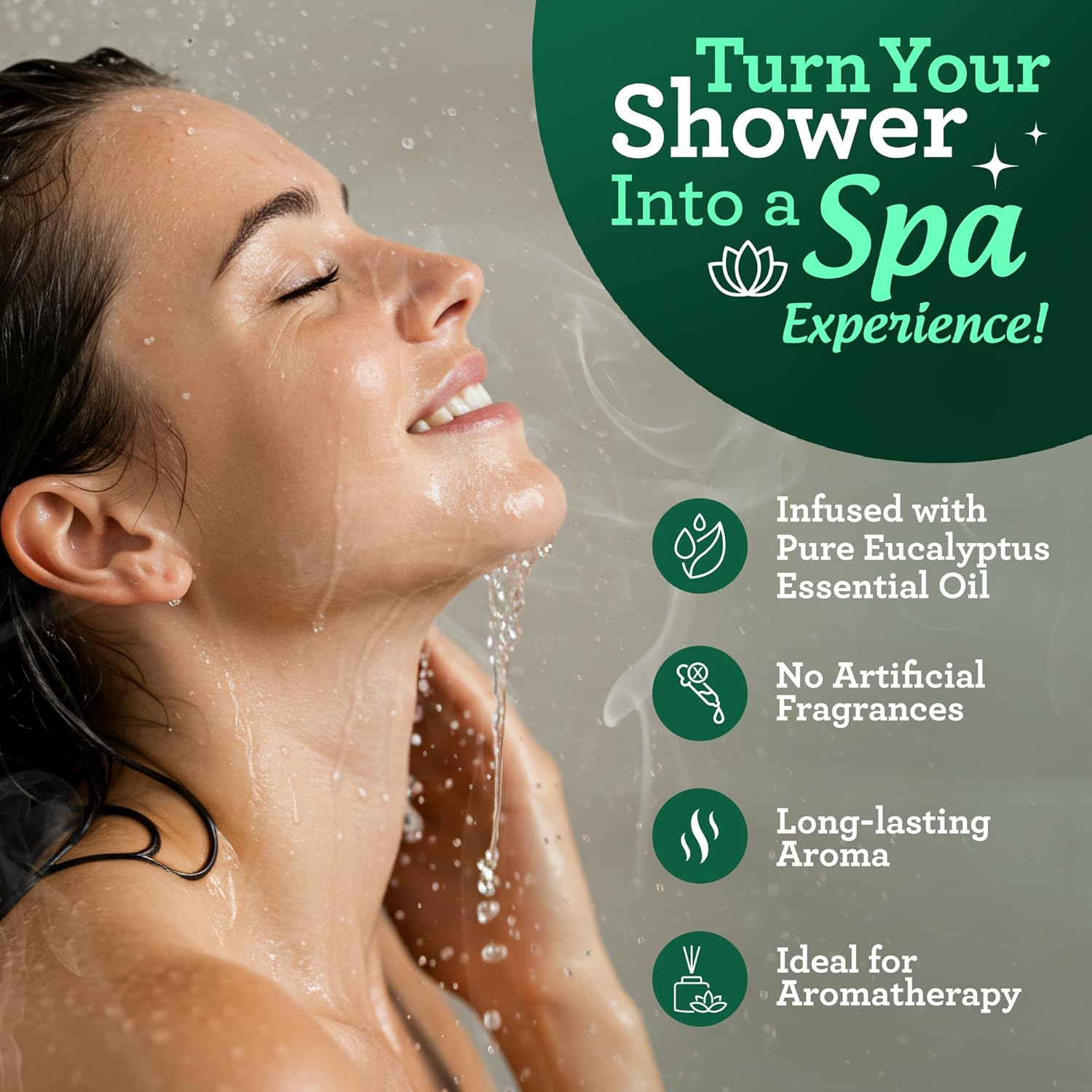 - TRANSFORM YOUR SHOWER INTO A SPA!: Revitalize with our GuruNanda shower tablets, infused with 100% natural eucalyptus & menthol. They dissolve cleanly, releasing a long-lasting, refreshing aroma that elevates your mood and melts away stress.