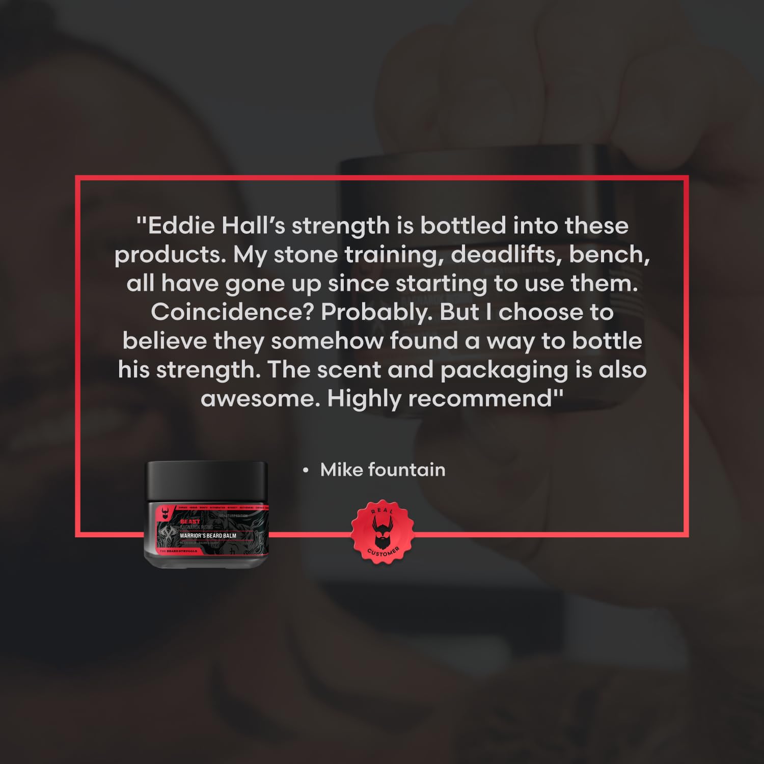 - Signature Eddie Hall Beast Line Balm – Official Warrior’s Edition from the Ragnarok Rising Collection, designed to tame, sculpt, and strengthen your beard with primal precision.