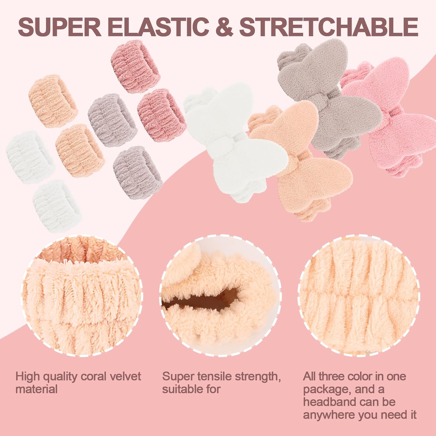 - 【Better Elasticity】The makeup headband has better elasticity. The Sap headband fits all and can be stretched up to 12 inches to fit around your head and keep your hair out of your face at all times