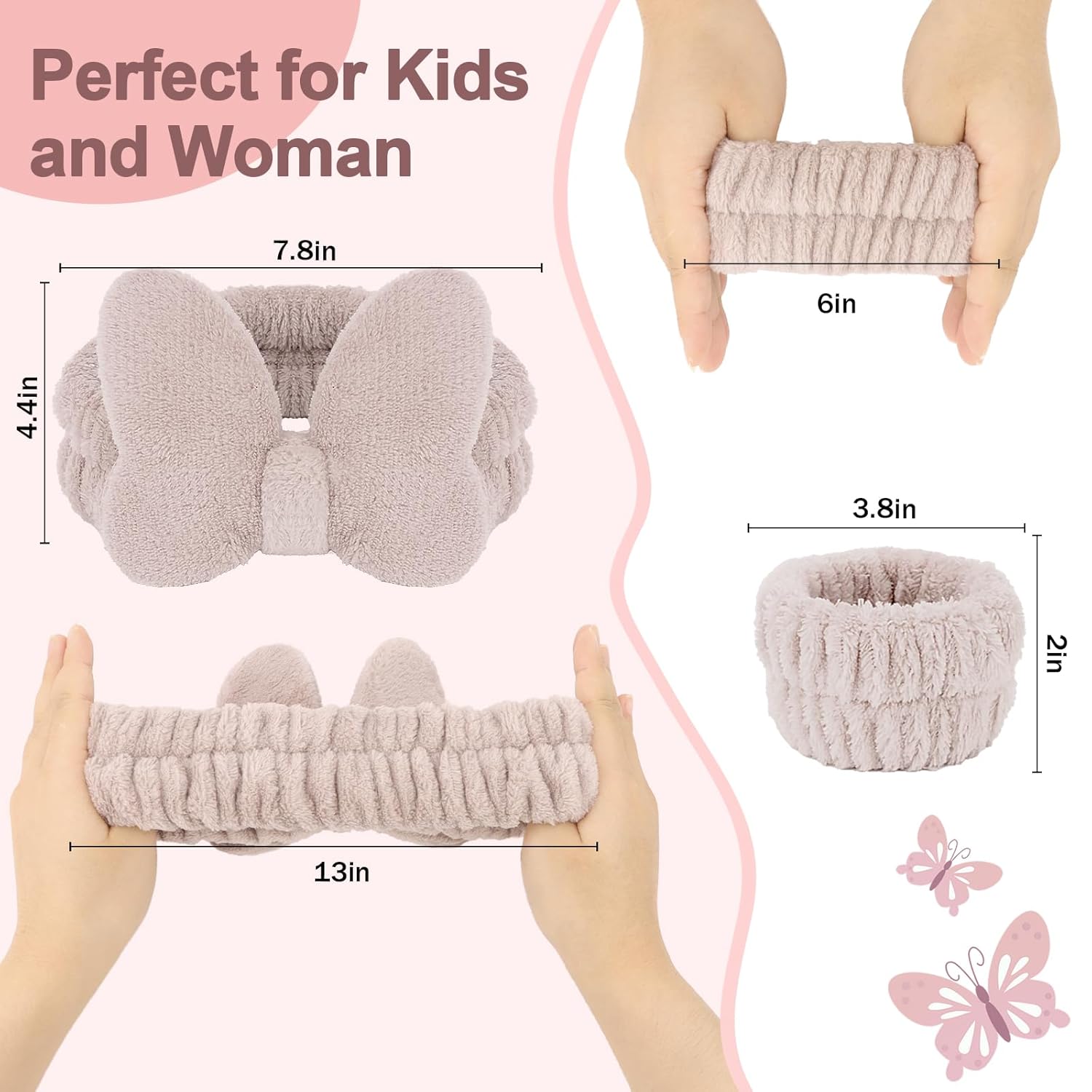 - 【Face Headband with Butterfly】The cute butterfly design makes you look cute and sweet. The hair holder for washing face keeps hair from falling in front of your face and provides a dry barrier for your hair while you wash your face, as does a wrist strap that keeps liquids from splashing on your arms