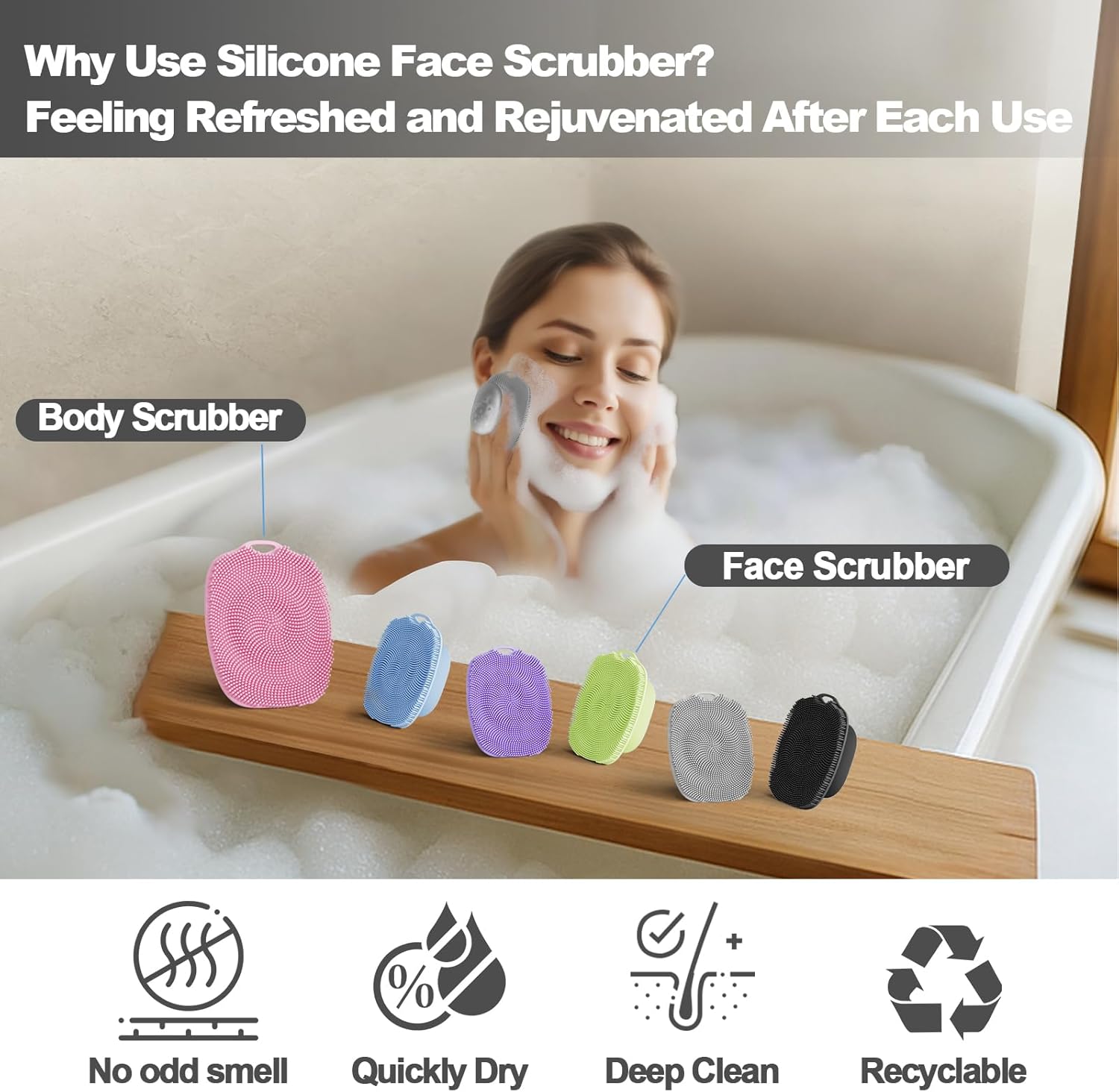 - Deep Clean: Silicone body scrubber and face scrubber are manufactured using premium food-grade silicone material, ensuring ease of cleaning, quick-drying, reusability and exceptional durability
