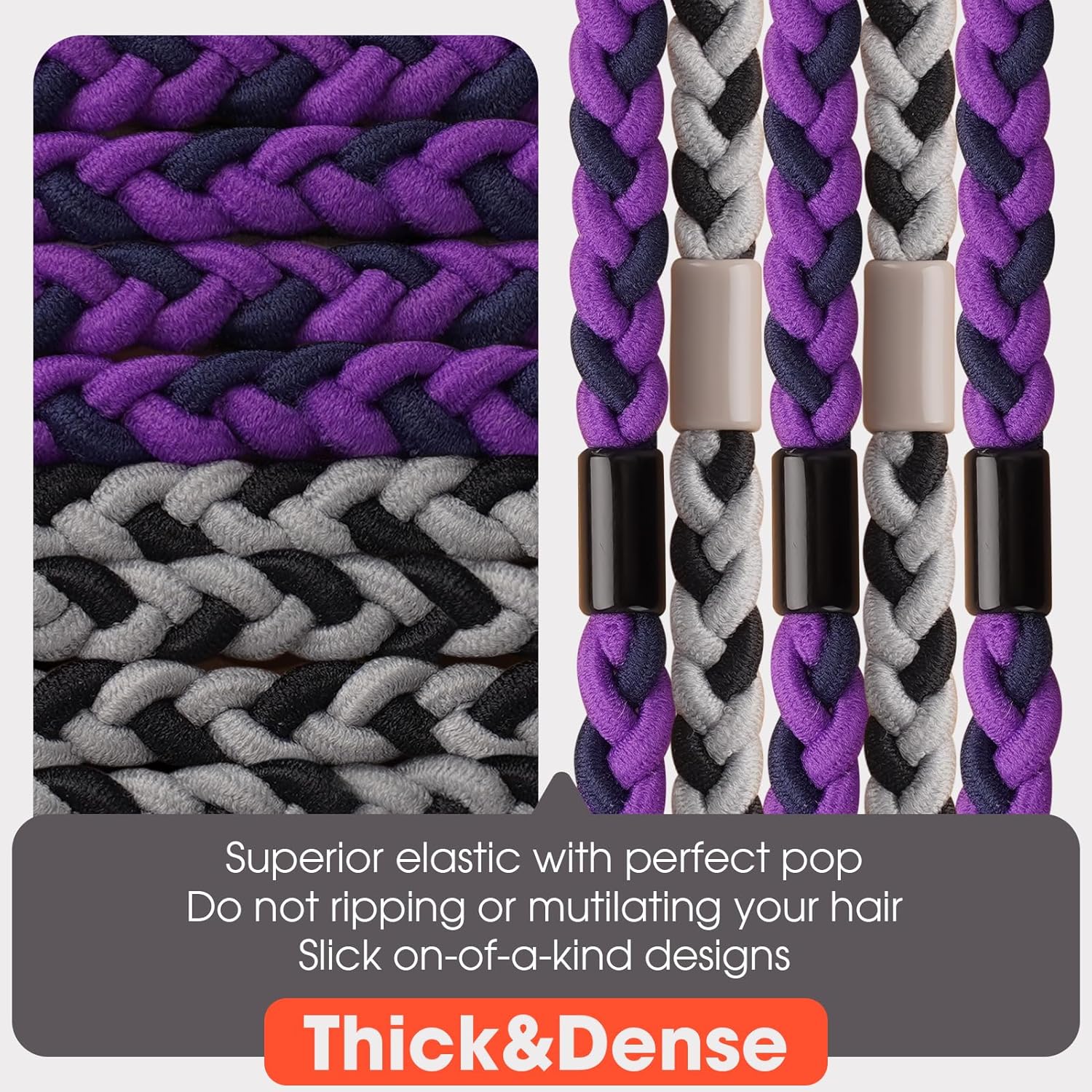 EasYoung 10pcs Braided Men's Hair Ties for Buns, Curly, Thick Dense Hair - Elastic Coils for Men & Women, No Crease