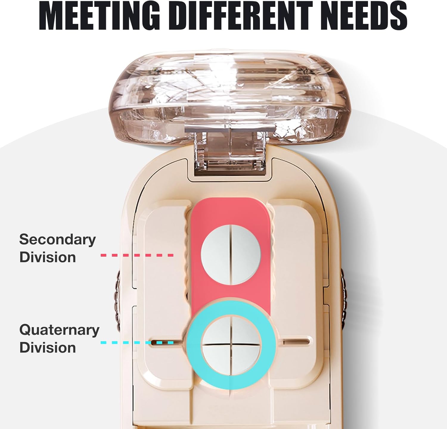 - Non-slip Gear Design Centering device prevents pills from slipping or crushing—guarantees even cuts.
