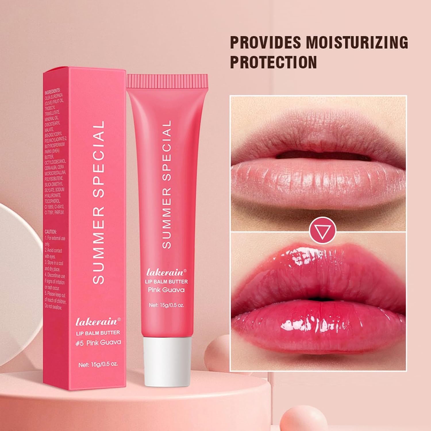 Summer Special Lip Butter Balm - Ultra-Hydrating, Nourishing Lip Care with Natural Ingredients, Shea Butter & Olive Oil, Soothes & Softens Dry Lips (#5 Pink Guava, 1)