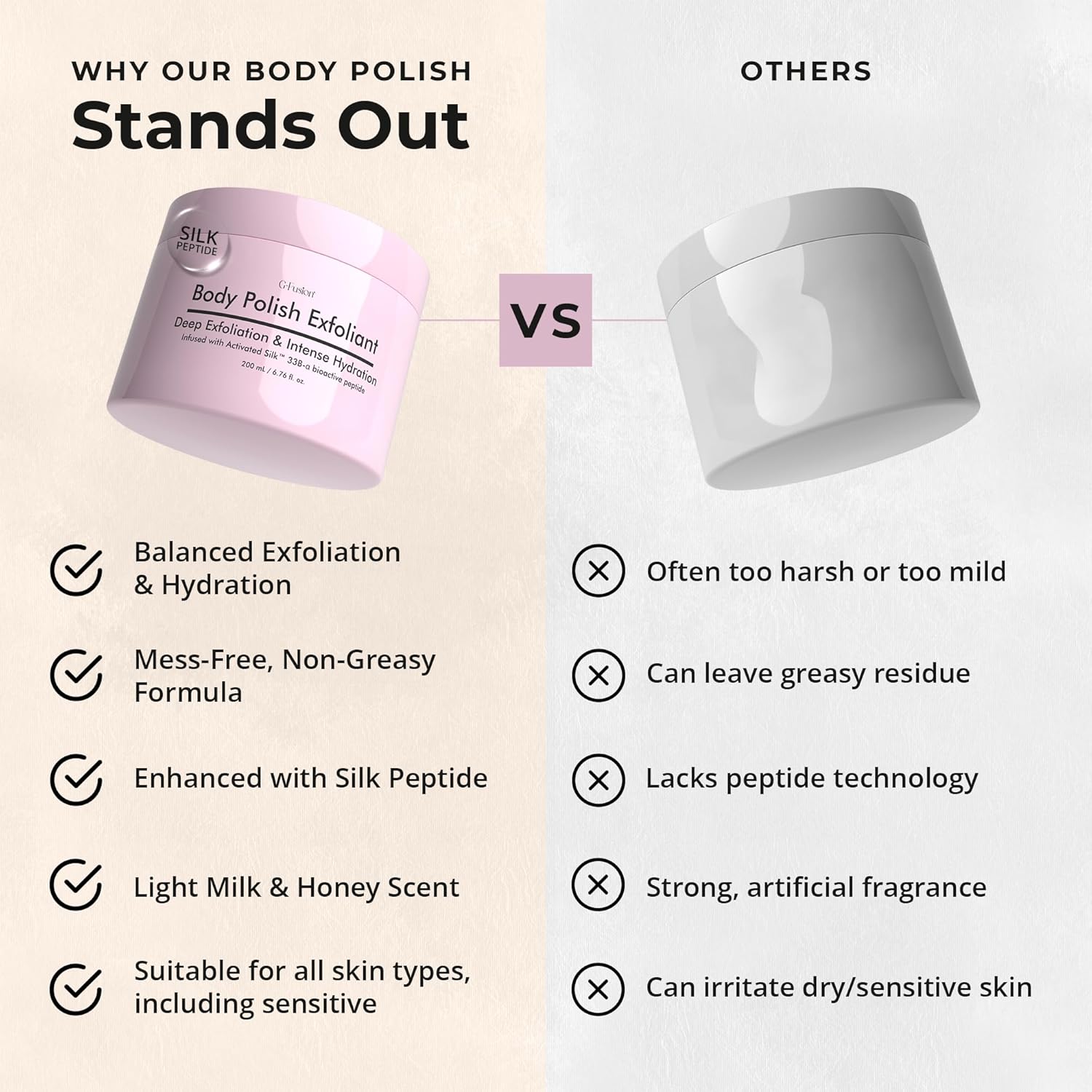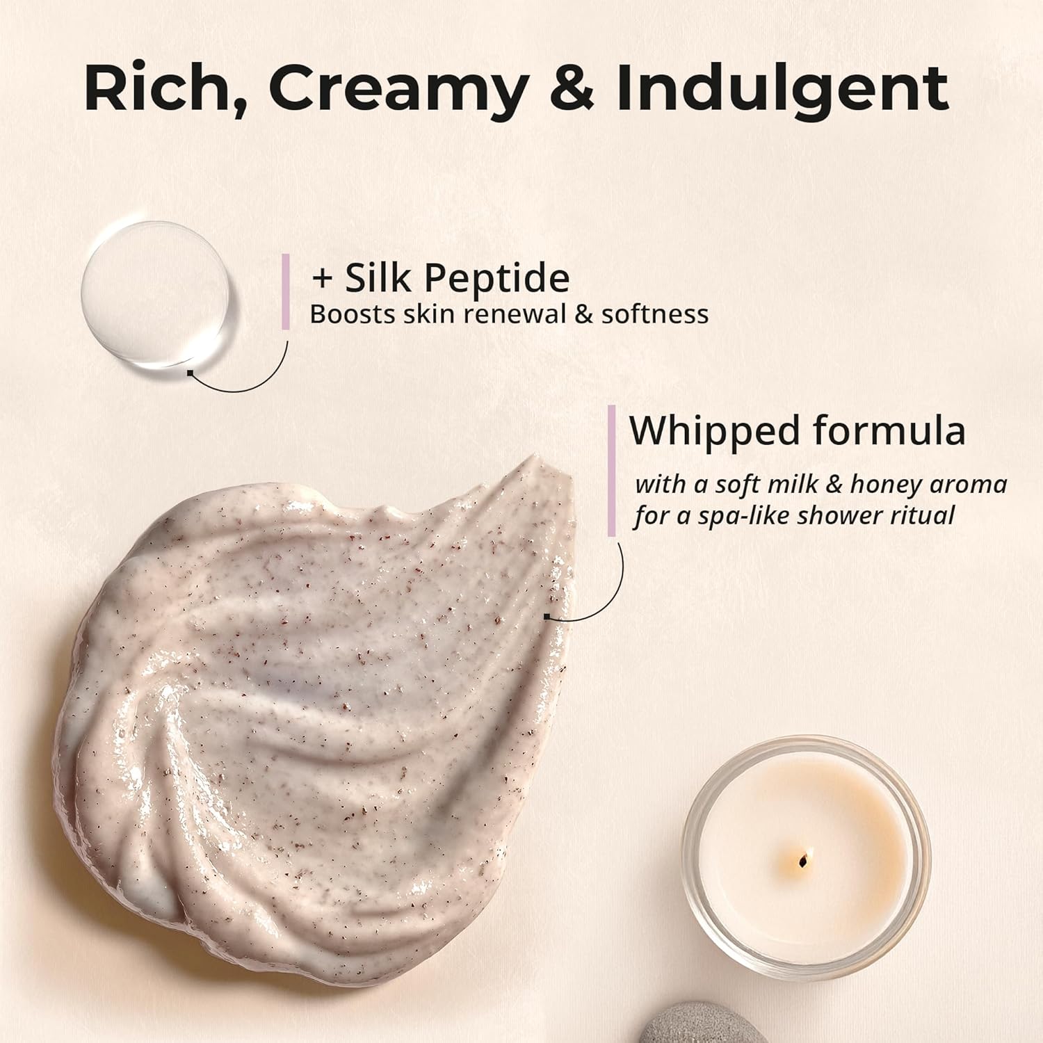 Silk Peptide Body Polish Gentle Exfoliant - Honey & Coconut Body Scrubs with Shea Butter, Exfoliants & Hydrating Oils for Smooth, Glowing Skin â Deep Moisturizing & Radiance Boosting Formula