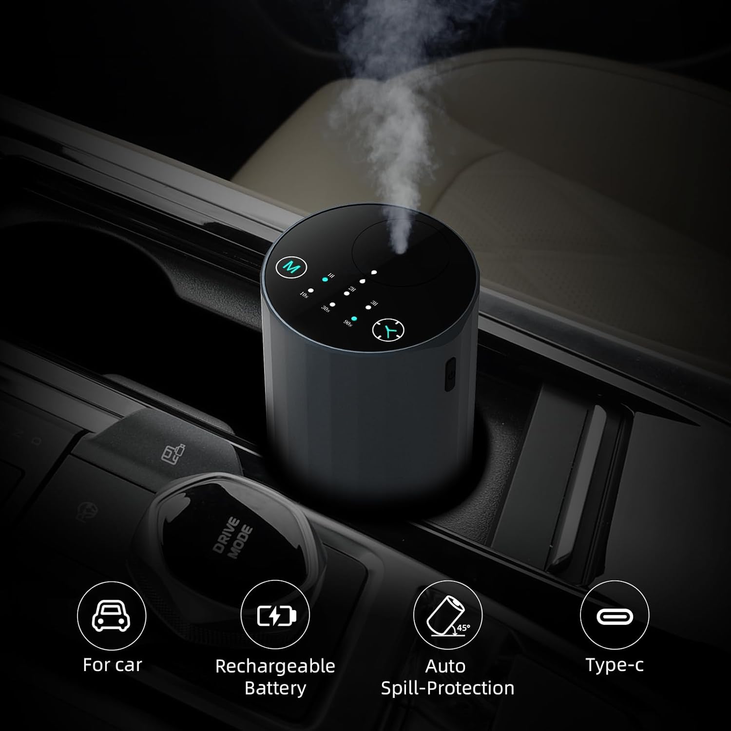 - 【Portable & Versatile — Car, Home, Office, Travel】Smaller than a soda can, this waterless diffuser fits in car cup holders, on desks, or in bags. A cordless, automatic mini device that brings spa-like freshness to your desk, soothing lavender to your bedroom, or an energizing scent on road trips—360° fragrance anywhere