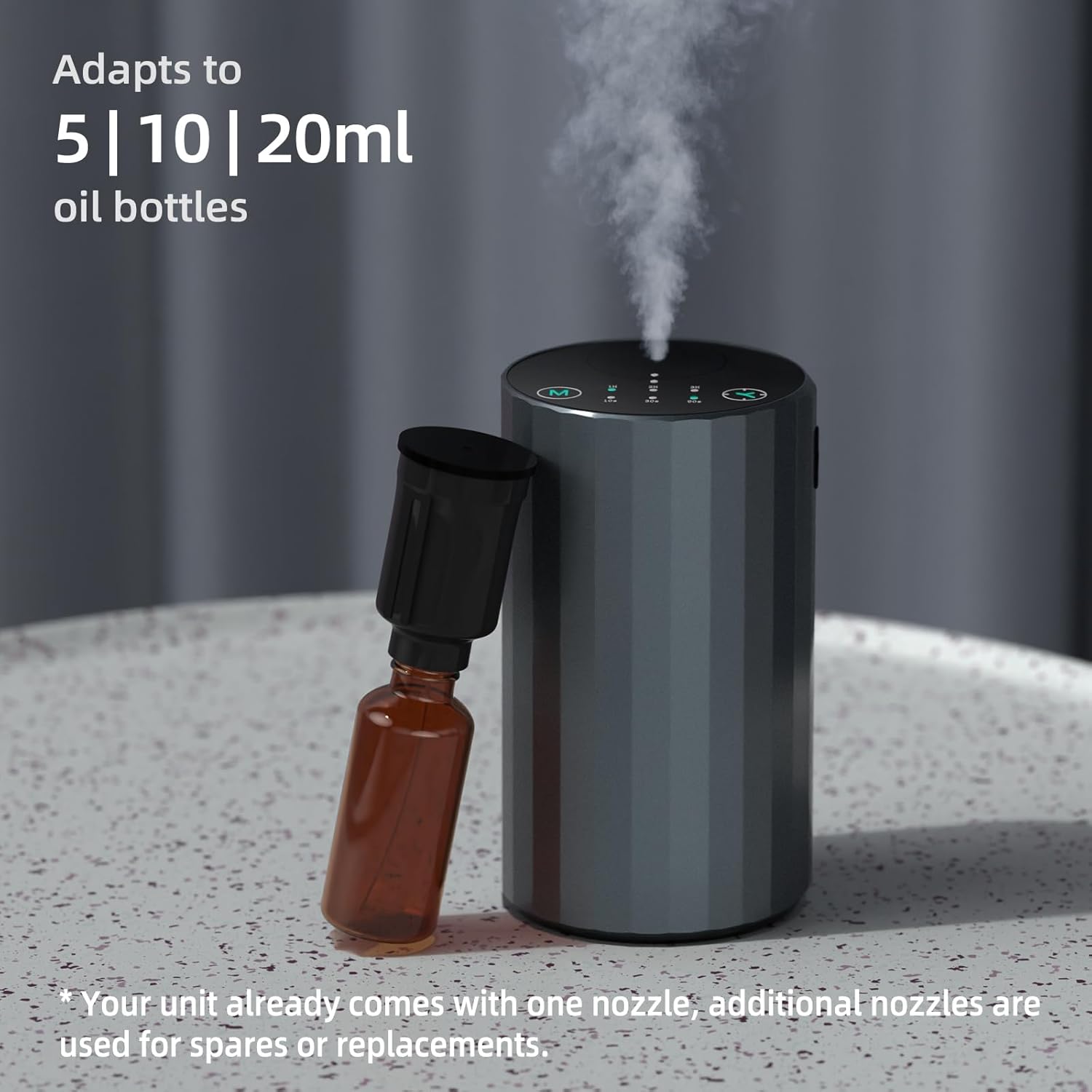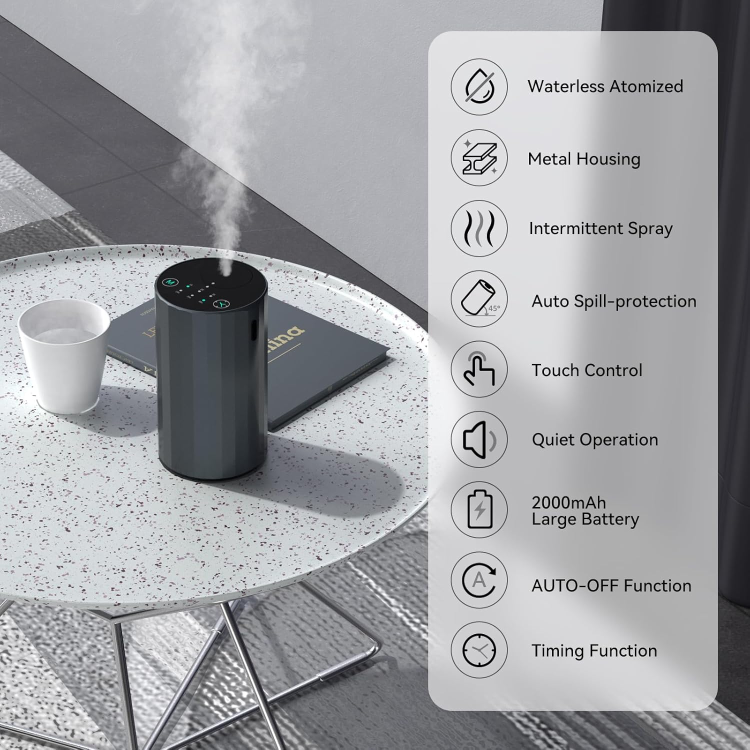 Waterless Essential Oil Diffuser Aromatherapy Scent Diffusers for Home Large Room, Bedroom, Car, Office, Desk, Battery Operated Mini Portable Air Freshener (Grey)