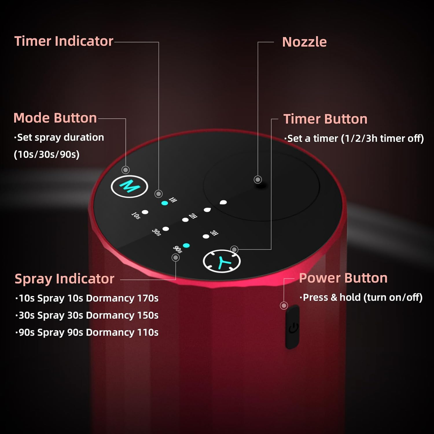 - 【Long-lasting Battery & Smart Control】Charge via USB-C, car charger, or power bank. A full 3-hour charge provides 24 hours of continuous use or 48 hours in eco mode. Customize mist levels (10s/30s/90s) and countdown set timers (1H/2H/3H) to suit any space—from cozy cars to large living rooms (up to 600 sq. ft!). Save oil with precise control—no waste