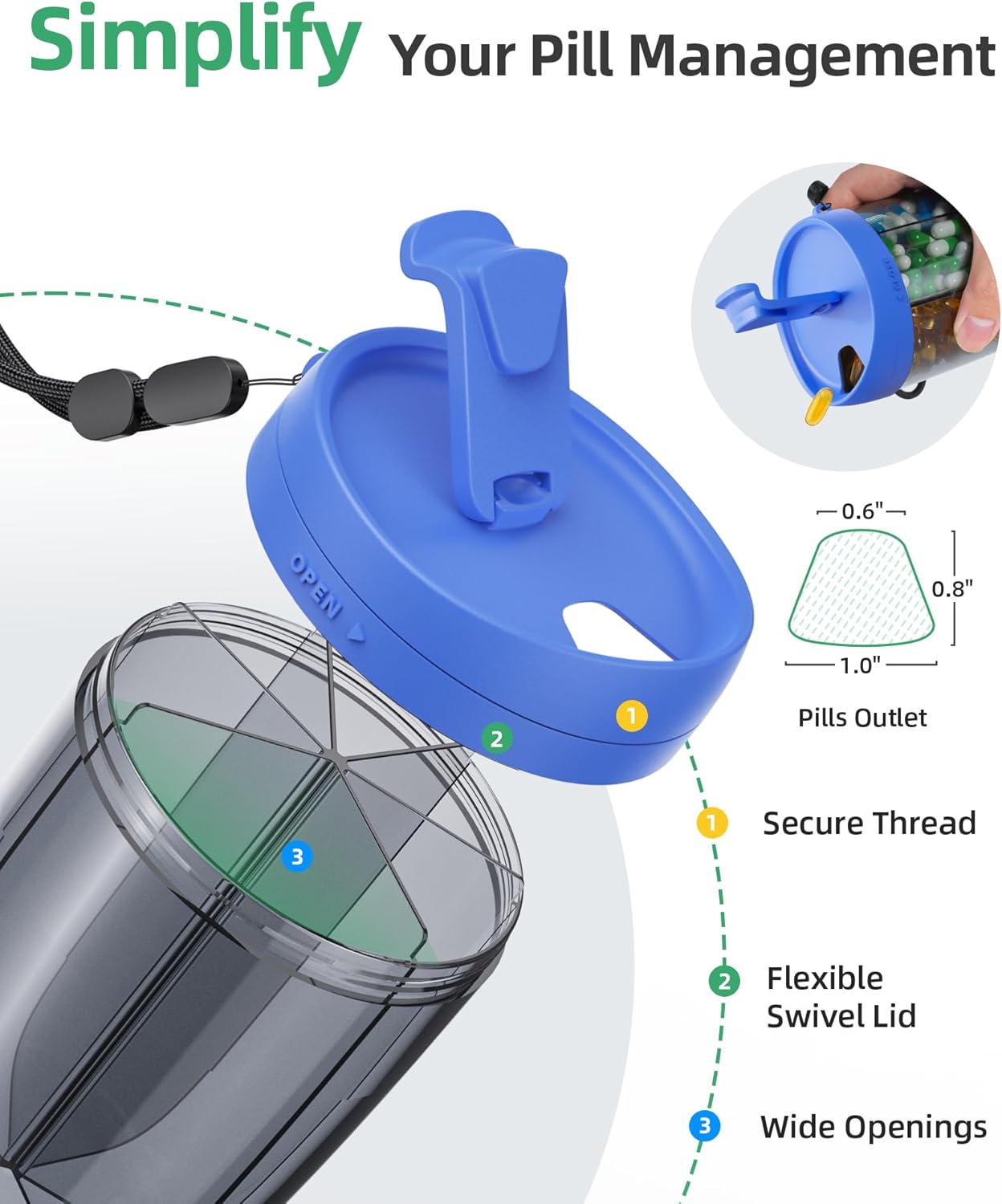- Easy to Retrieve: The smooth-loosing thread and lid can swivel flexibly, and the wide openings are friendly for taking pills. With the above 3 thoughtful and unique designs, the large pill organizer makes filling and taking medication effortlessly