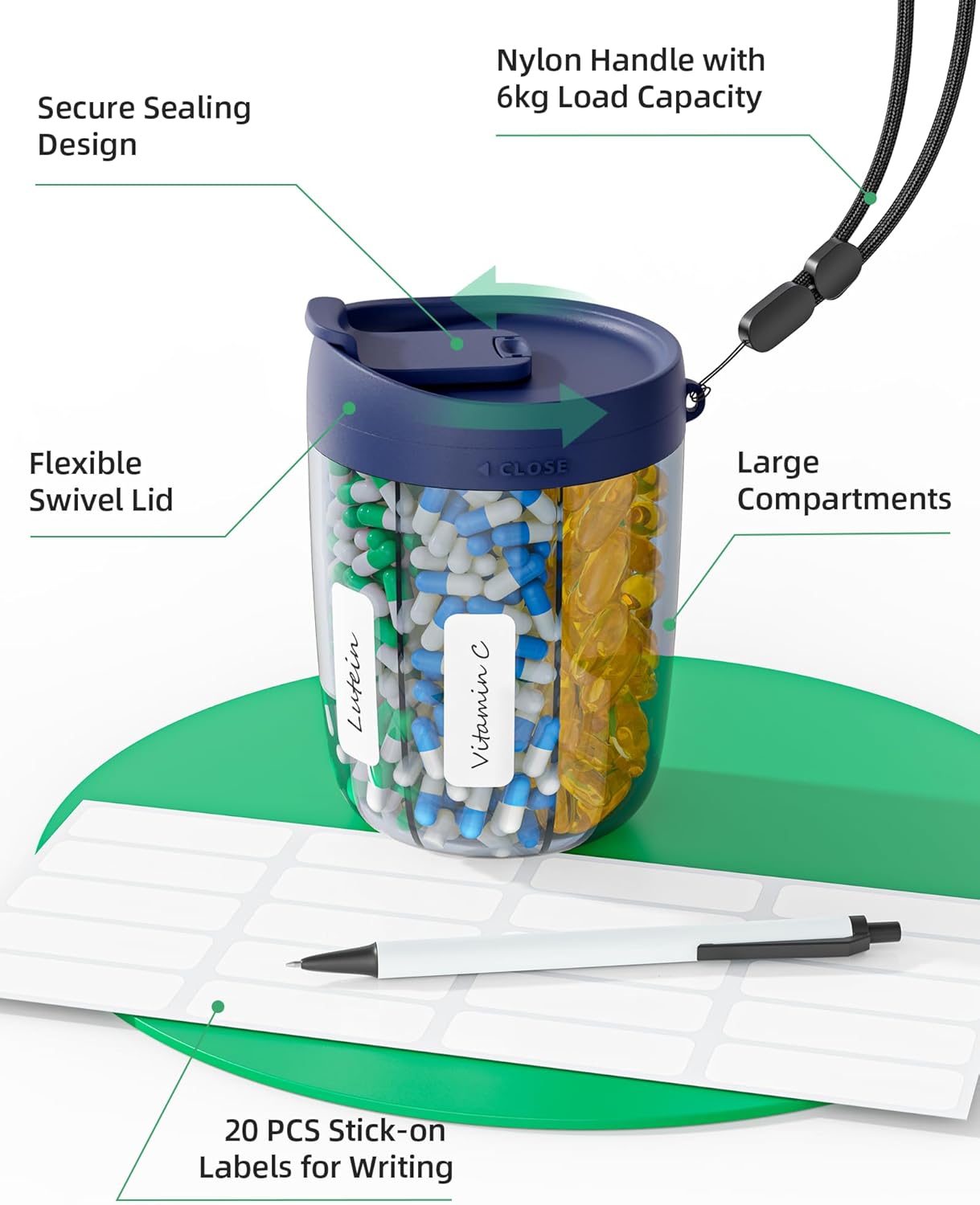 - Travel hassle-free: If you are looking for a pill container for long trips, the PULIV travel medication organizer is your ideal travel assistant. The supplement organizer bottle is equipped with a nylon strap handle for a 6kg load, making it easy to carry around with you on the go. Enjoy your relaxing and free travel