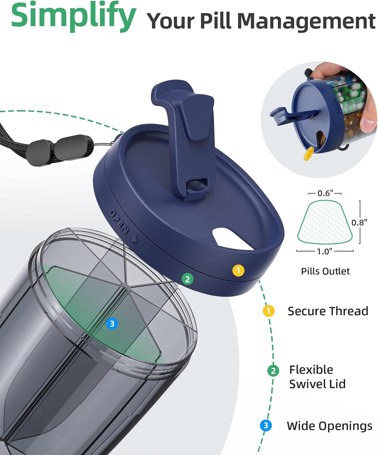 - Easy to Retrieve: The smooth-loosing thread and lid can swivel flexibly, and the wide openings are friendly for taking pills. With the above 3 thoughtful and unique designs, the large pill organizer makes filling and taking medication effortlessly