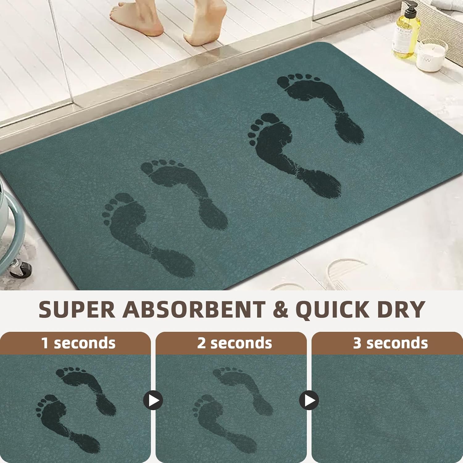 - 【Super Absorbent & Quick Dry】These bathroom mat quick dry are designed with a Faux suede surface, Sabsorbs water efficiently, no water accumulation. bathroom rug absorbs dripping water in 3 seconds when you come out from the bathtub or shower, With its quick-drying design makes the bath mat dry quickly, Keep the floor clean and dry to keep your home comfortable and clean.
