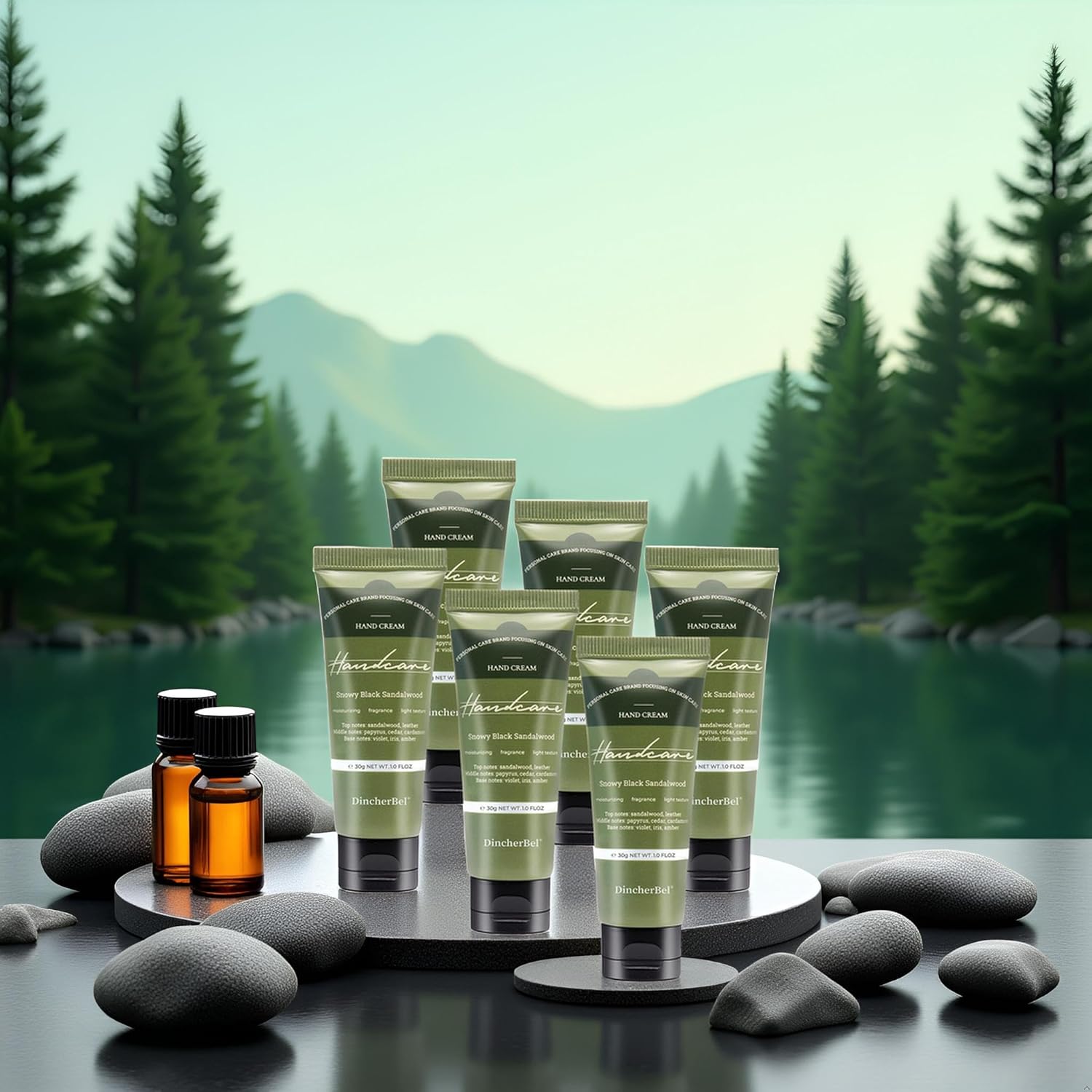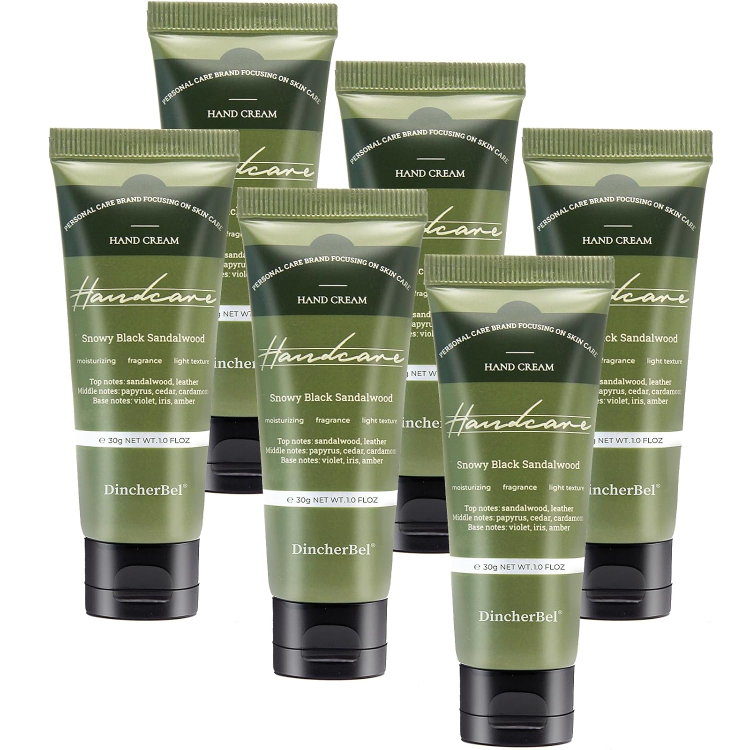 6 Pack Travel Size Hand Cream Set - 1 oz Moisturizing Lotion for Dry Cracked Hands, Snowy Black Sandalwood Scented Hand Lotion Gift for Women, Nurses, Teachers, Bridesmaids Gifts