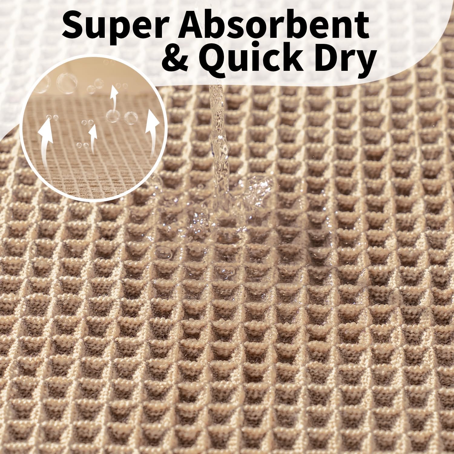 - Super Absorbent & Quick Dry: Experience the power of our waffle bathroom rug! Its unique weave acts like a moisture magnet, quickly absorbing water and drying fast. Keeping your bathroom dry and comfy