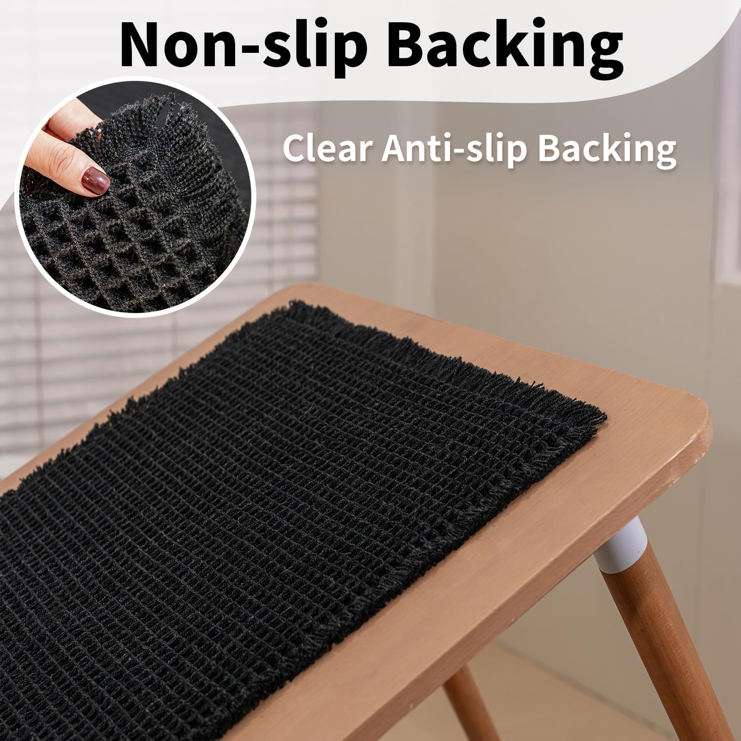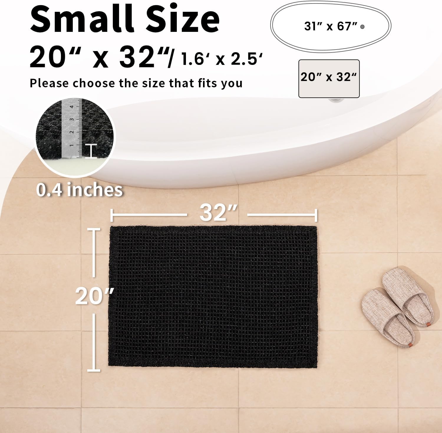Black Bathroom Rug - Waffle Bath Mat Non Slip Washable, Super Absorbent & Quick Dry, Boho Bath Mat Farmhouse Bathroom Decor, 20'' x 32'', Black