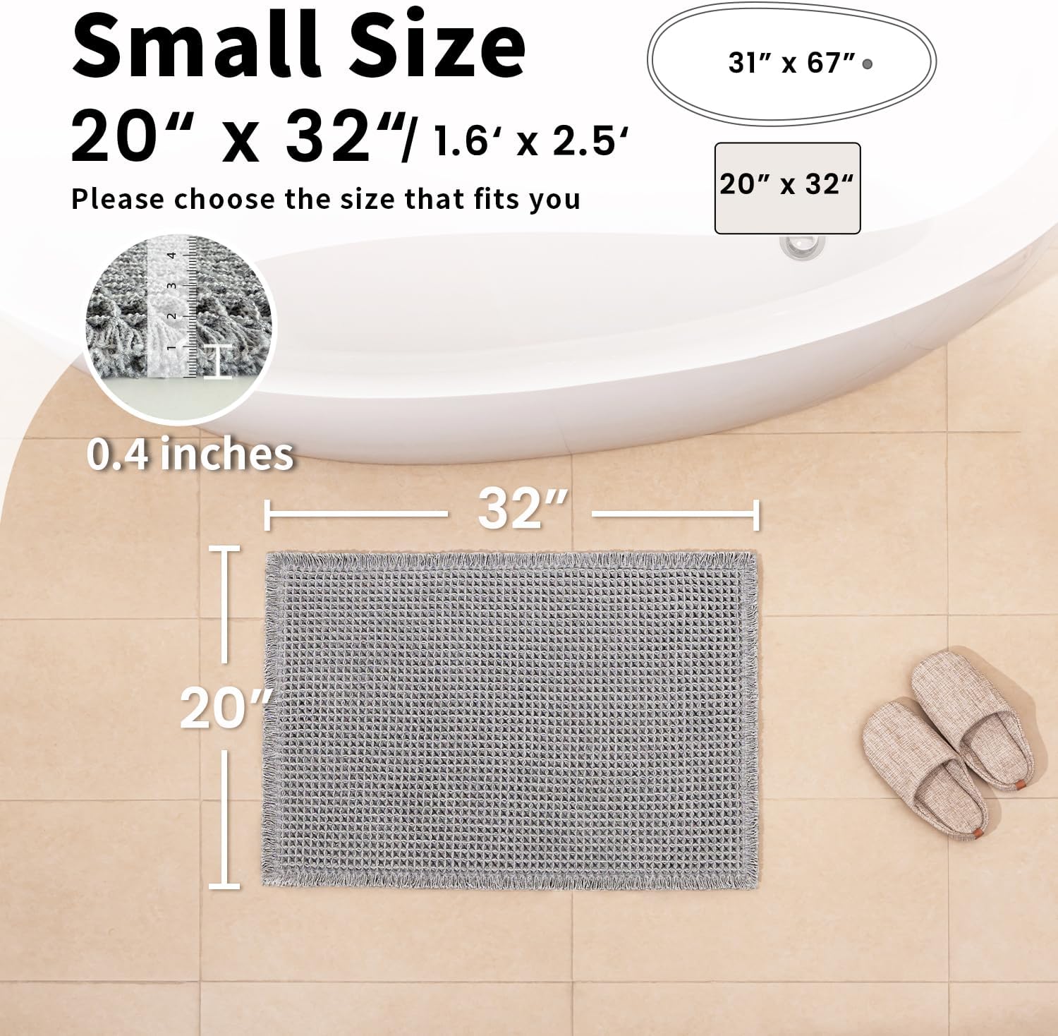 Waffle Bath Mat - Boho Bathroom Rugs Non Slip Washable, Super Absorbent & Quick Dry, Soft Bath Mat Farmhouse Bathroom Decor, 20'' x 32'', Light Grey