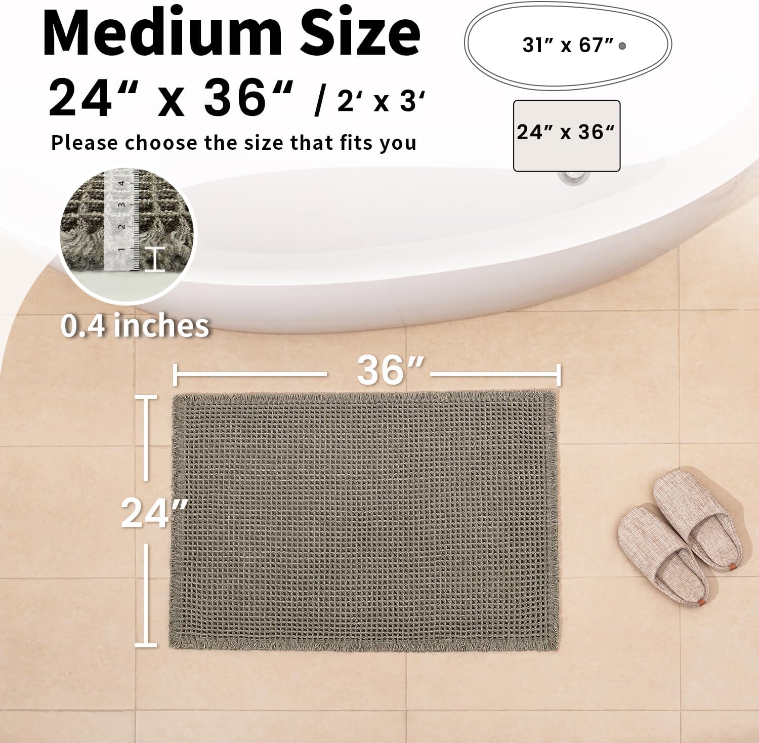 Waffle Bath Mat - Boho Bathroom Rugs Non Slip Washable, Super Absorbent & Quick Dry, Soft Bath Mat Farmhouse Bathroom Decor, 24'' x 36'', Olive Green