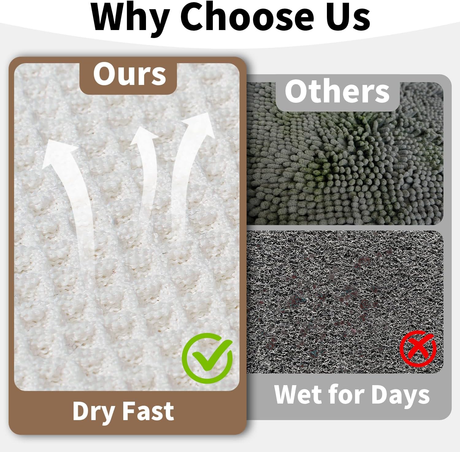 - Super Absorbent & Quick Dry: Experience the power of our waffle bathroom rug! Its unique weave acts like a moisture magnet, quickly absorbing water and drying fast. Keeping your bathroom dry and comfy