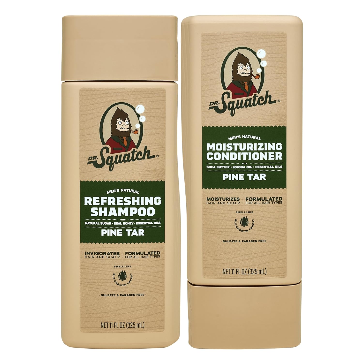 Dr. Squatch Natural Hair Bundle for Men - Healthy, Full Looking Hair - Pine Tar Shampoo (11 fl oz), Pine Tar Conditioner (11 fl oz)